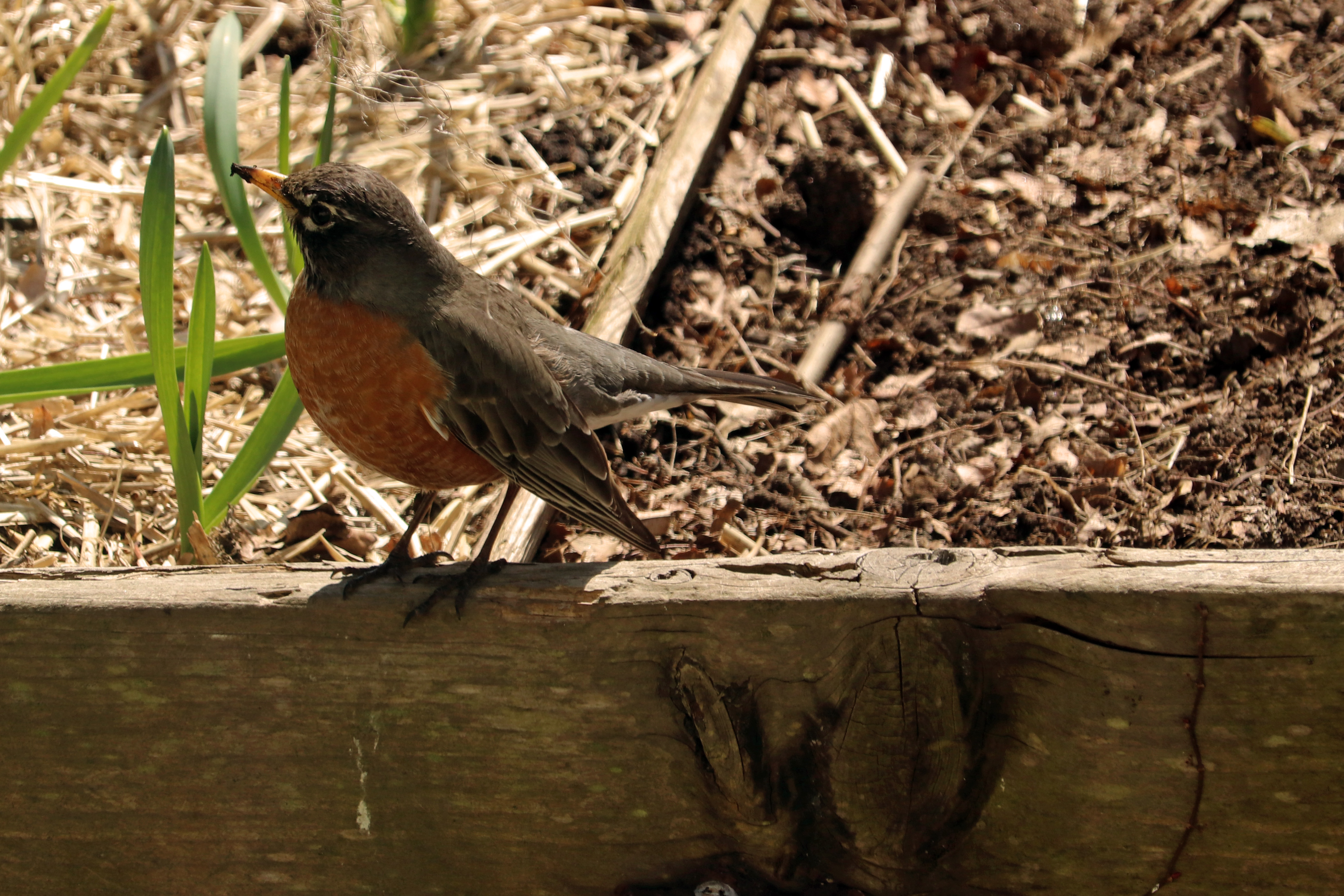 i only went out into the backyard today to refill the bird feeder. we're waiting for belmont to empty all our garden refuse bins this coming week so we can do more spring clean-up. hopefully next weekend we can mow the lawn and put down some crab grass preventer and fertilizer.