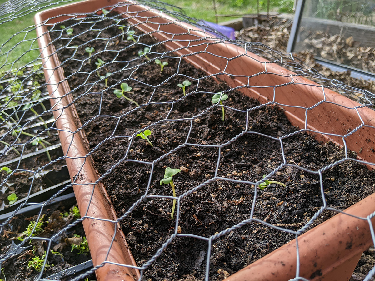 one final inspection of the backyard around 5pm, i discovered our hops plant was starting to form some bines. we put a mesh fence around it to protect them from rabbits (though later i read rabbits don't eat hops).