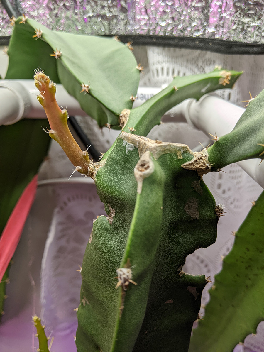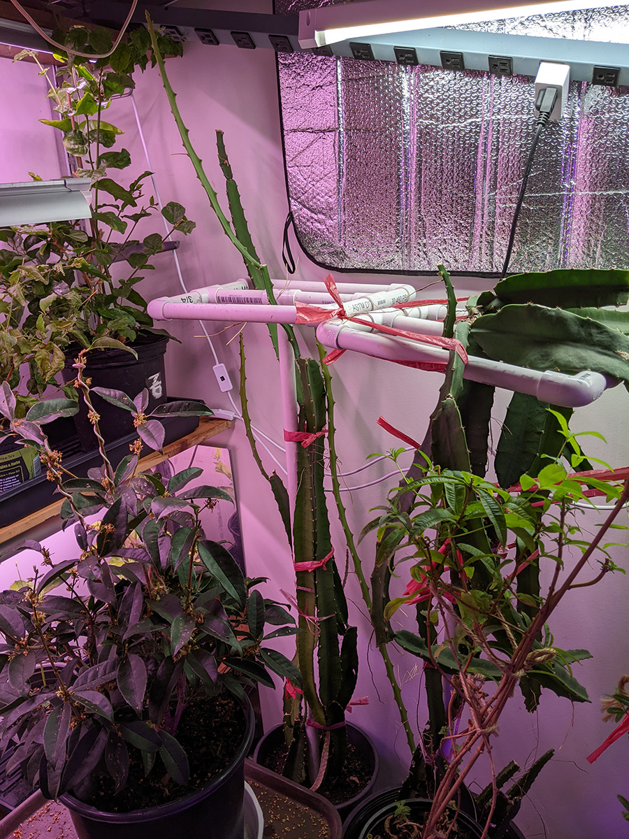 after finishing up with outside work, i was in the basement around 3:30pm, watering the plants. i also took a few outside (those that i found with mealy bugs) so i can spray them with neem oil. i pruned off any new cactus growth, as we want them to conserve their energy for when we move them outside.