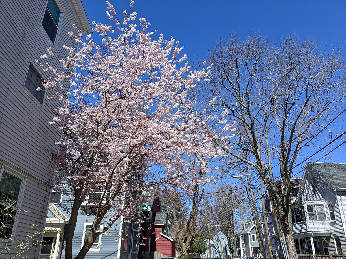 suddenly all the flowering cherry trees are blossoming: yoshino, weeping cherries, little pink ones that i don't know the names of. magnolias are also blooming too, big showy pink and white flowers with a distinctive fragrance.