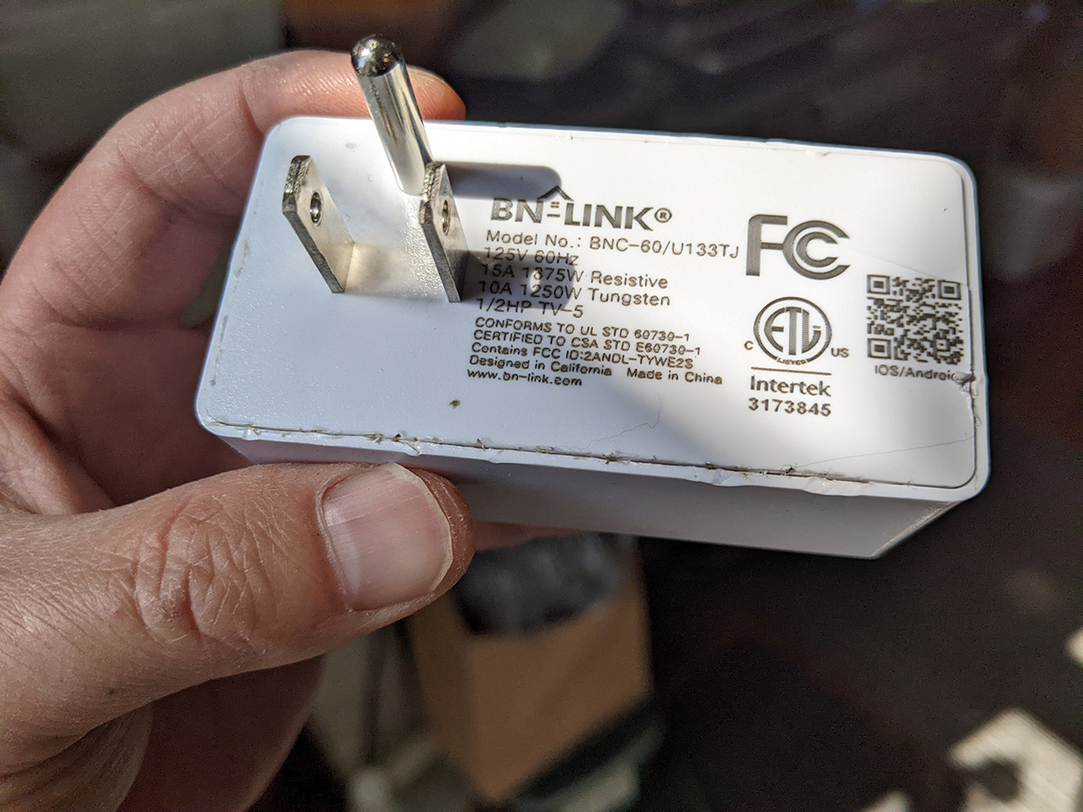 i set up another smart plug, this one for the cafe plant light. that's when i noticed that the supposedly new plug had been tampered with. it doesn't really matter as long as the plug still works, but it makes me a little angry that they'd sell these as new when it looks like they've been refurbished or previously owned. i could complain to the company, but bn-link smart plugs with energy monitoring function are hard to come by these days, so i'm good for now.
