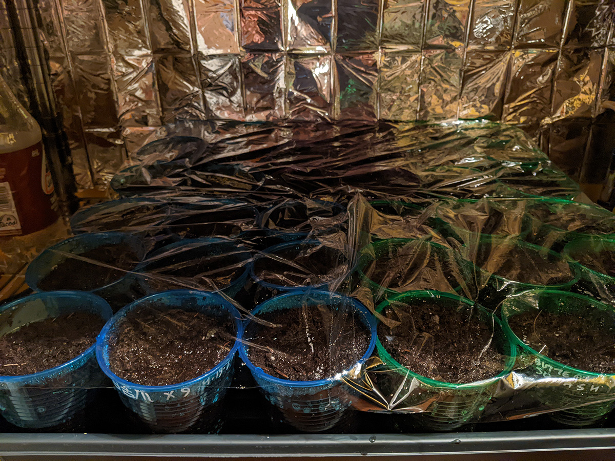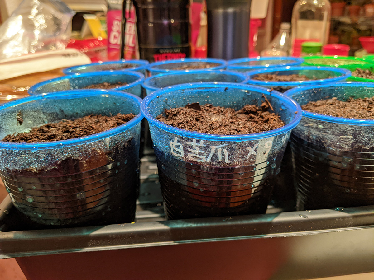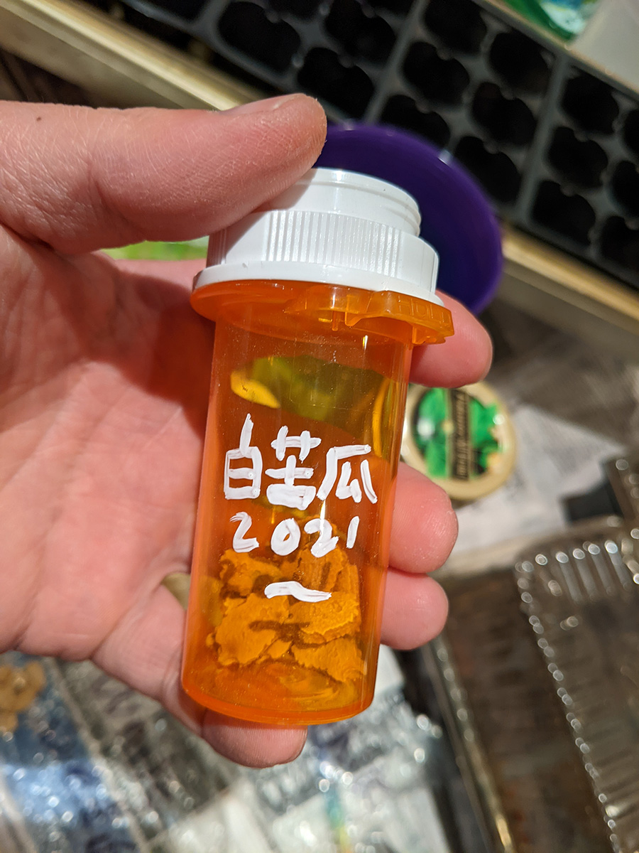 around 9pm i got around to planting a second batch of seeds: 9 white bitter melons, 9 buttercup squashes, 6 blue beans, 6 long beans, 6 hyacinth beans. it took a long time to pack the potting soil then soil them in water before planting. in all, it took 1-1/2 hours and i wasn't finished until 10:30pm. i went with white bitter melons because they're more special, as taiwanese bitter melons are typically white. i didn't bother soaking the seeds, it's hard for the water to penetrate the seed shell anyway. i am however using the heating mats to speed up germination. there's some controversy regarding starting bean seeds indoors. last year, the ones we grew inside and transplanted didn't do well, but i think part of it had something to do with the fact that we planted them too early, when the weather was still cold. long beans in particular do best in warm weather. we have enough seeds to plant them outside.