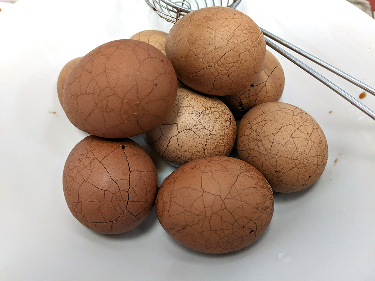 i made some more tea eggs today - 5 - to add to the existing 9. my father had changed out the spice packet. i also collected ice from the ice machine in the basement, scooped them into containers and put them in the freezers.