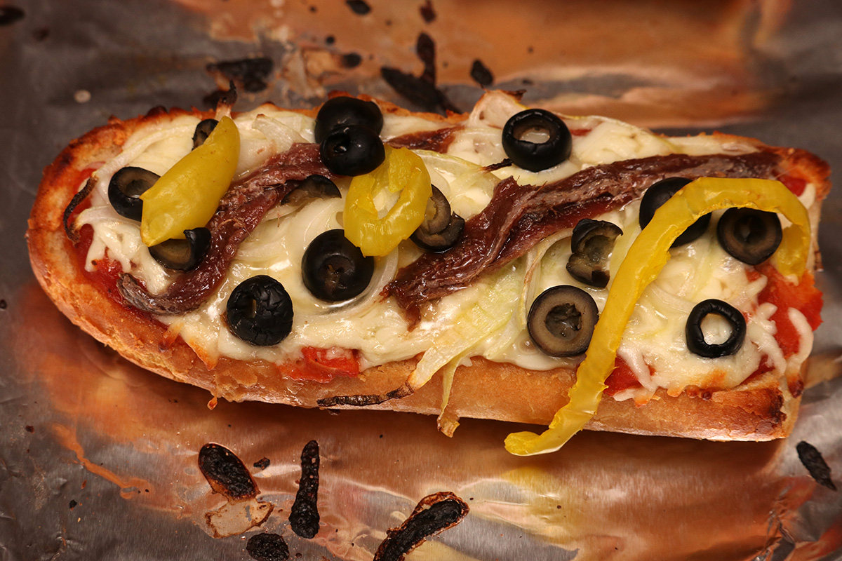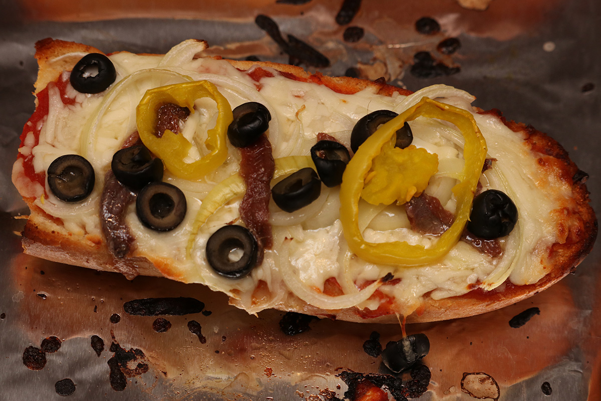 for dinner i made some more french bread pizza. i used up all my anchovies. i might bring the rest of these ingredients to belmont this weekend so my father can sample some of my french bread pizza. no anchovies, but i have plenty of pepperoni.