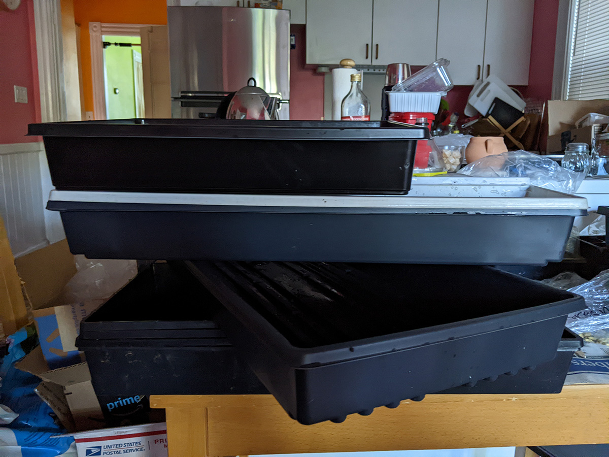 my package of 10x 15.7 x 11.8 x 2.4" ($25.50) growing trays arrived today. these trays are a weird size, about 2/3 the length of a standard 1020 growing tray.