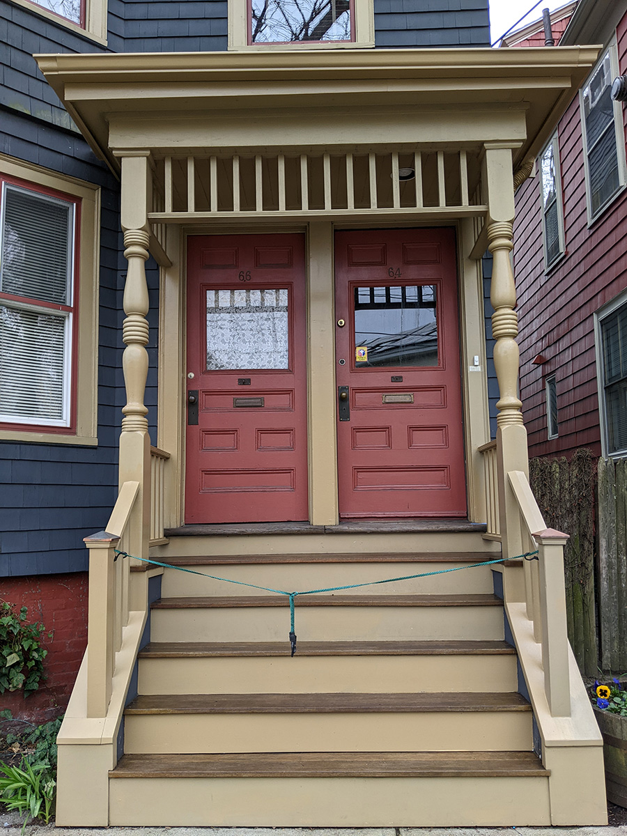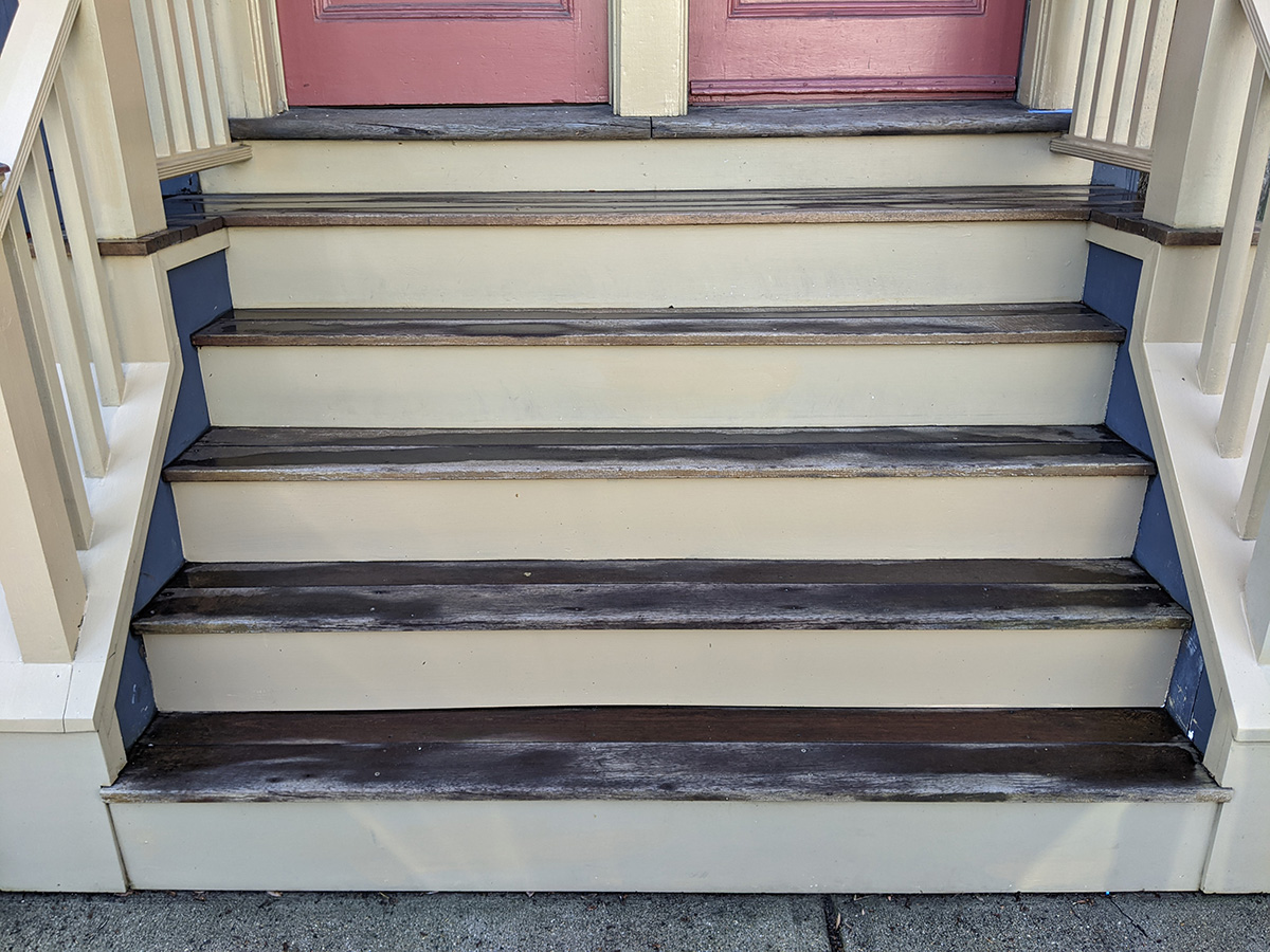 i finished by 4pm, much later than i wanted. i cleaned up, running a bungie cord across the steps so nobody would try to walk up while it was drying. i also texted and e-mailed my upstairs neighbors, letting them know the steps need at least 24 hours to dry, and to use the back door.