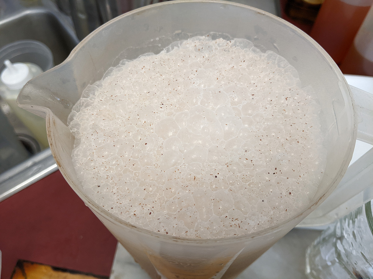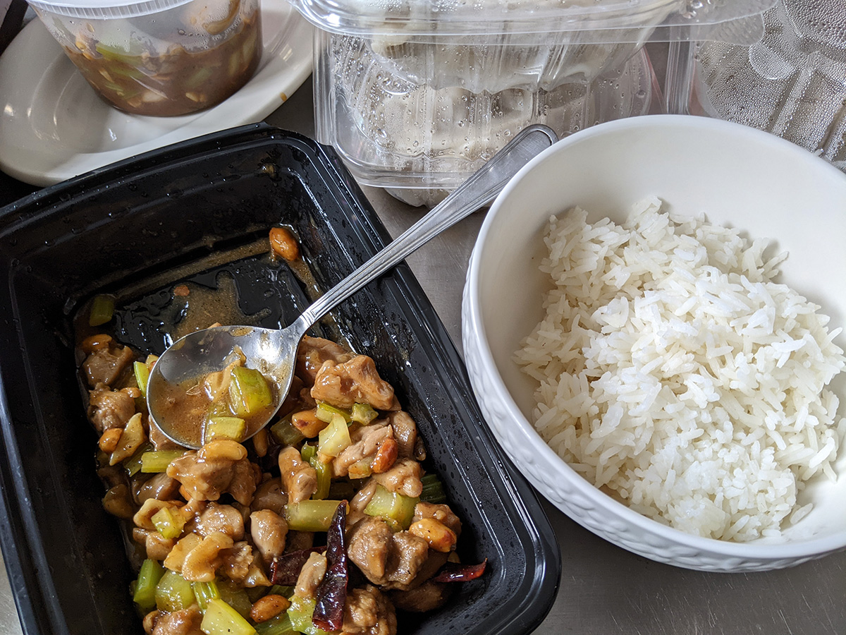 because we did have a customer, we just didn't know it. a online pickup order came in at 12:33pm, but nobody bothered to look at the receipt printer, which had printed out an order ticket. i was busy making my horchata (more on that later), while my father was busy making some kung pao chicken in the back. we didn't see the order ticket until 1:10pm - nearly 40 minutes - and basically went into panic mode making the order. fortunately it was all thing we had on hand, and even more fortunate that the customer was late to arrive. it took us just 10 frantic minutes to complete the order. i even told the guy picking up that he was our first online customer, and my father gave him an extra vegetable bun as a thank you.