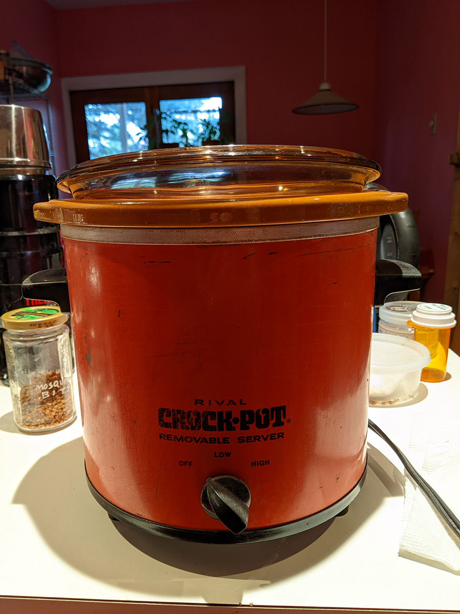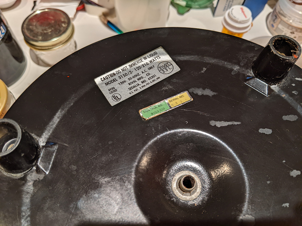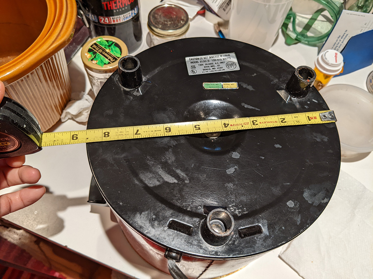 i was going to bring my old crockpot, because we really need to upgrade the 2qt cafe crockpot we currently use to marinate the tea eggs. 2qt is a cute size, but it's just too small. my old crockpot is the 3150/2, which is 3-1/2qt. a single quart is equal to 8-9 medium-size eggs. so currently the maximum number of tea eggs we can put in the 2qt crockpot is 18. the 3-1/2qt crockpot would allow use to have about 30 eggs. the only caveat is the old crockpot only has a high and low setting, no keep warm.