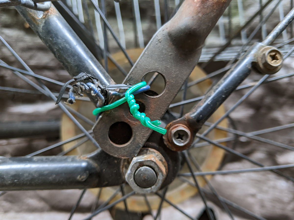 i ended up leaving around 4pm. i went into the alleyway to pump up my bike tires for tomorrow's ride into boston and to secure the rear baskets with a new strand of wire. that's where i bumped into my upstairs neighbors, jeff and michelle.