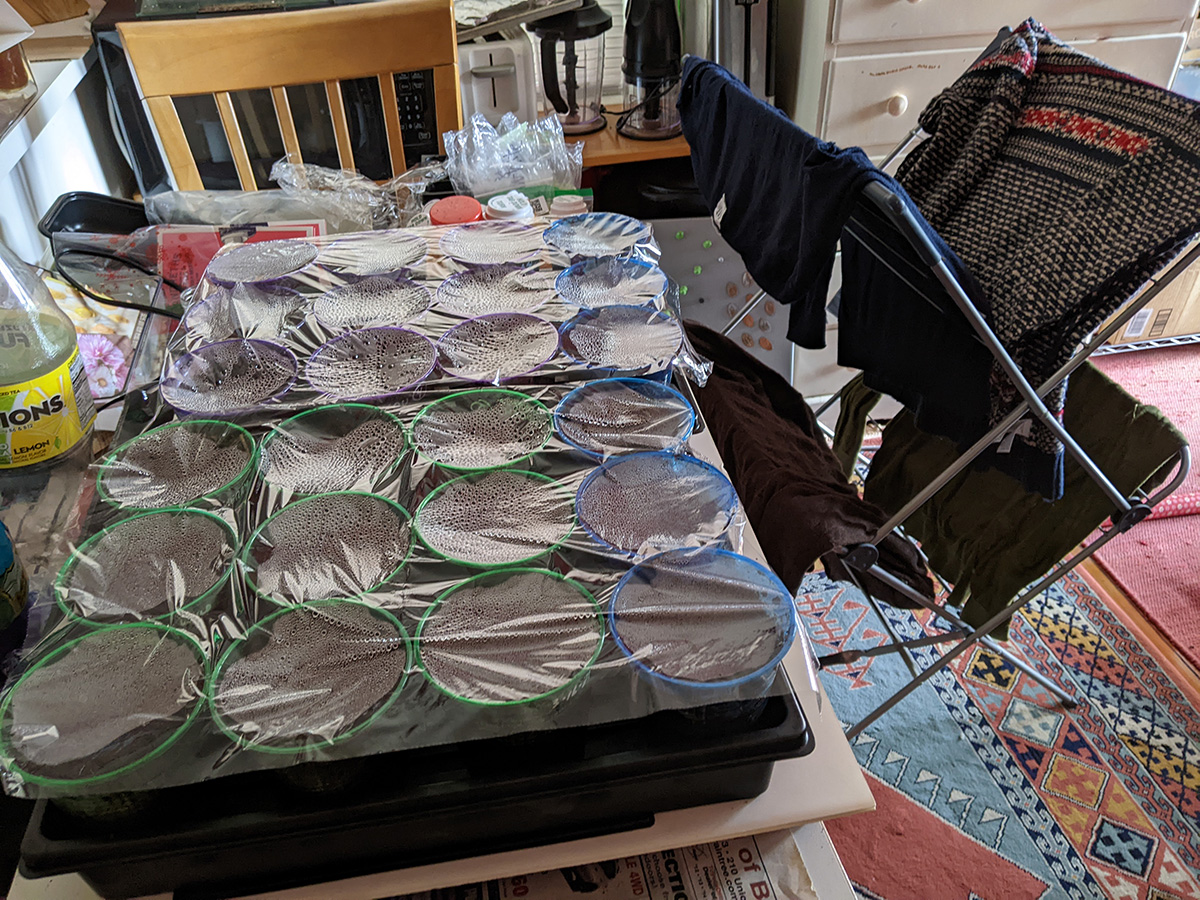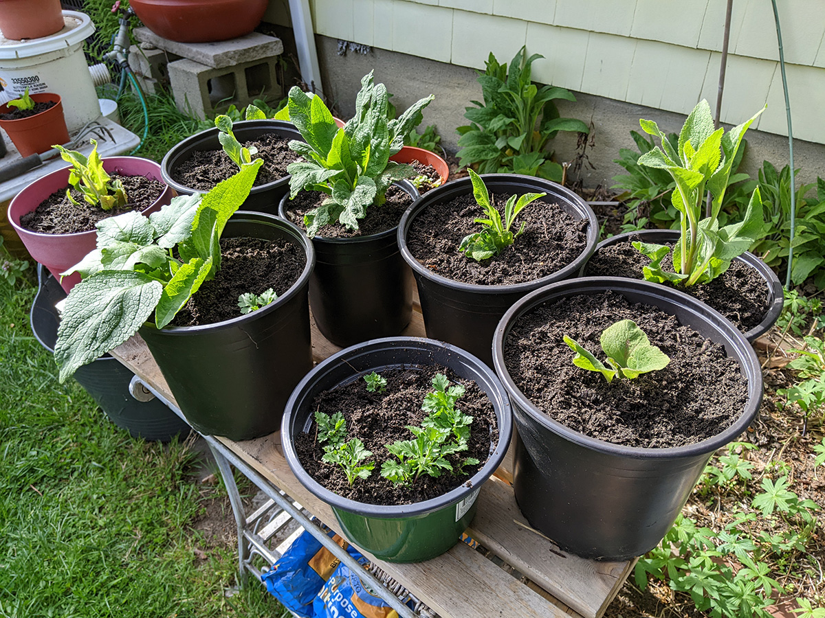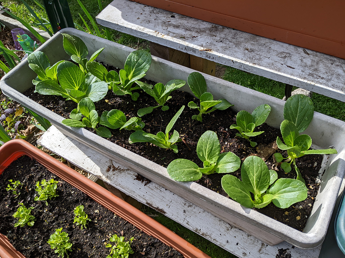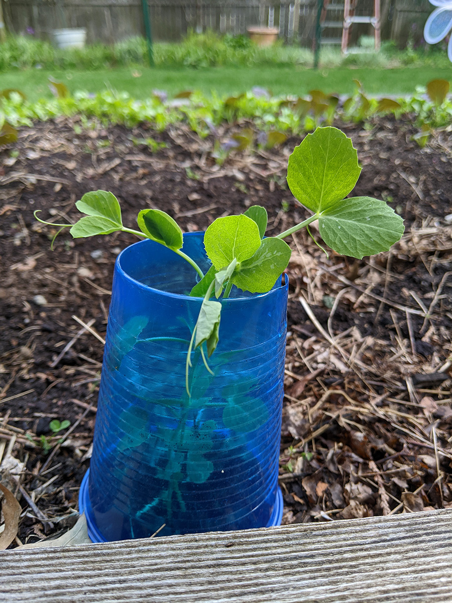 the strong winds had blown away all the protective plastic cup sleeves i put around the peas. i rounded them up from around the yard and put them back. when my father returned home around 4pm, we unloaded the compost. we stored them in discarded mulch bags. we moved the wooden plant stand next to raise bed 0 and i put our baby bokchoi and chinese celery seedlings on them, to keep them away from hungry rabbits.