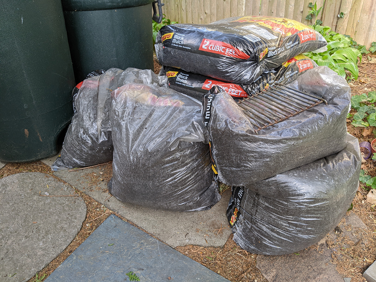 there were two lines, one for people with small buckets where an attendant helped them fill their containers, and another line for people filling their own larger containers. right away i realized the leaf litter bags were going to be useless, so i just filled my sister's trash can and my two grow bags. while my sister went to go get the car, i decided to get even more compost when i noticed there wasn't any line. i used the leaf litter bag this time, and i had to carry it gently by the bottom as it was liable to tear open.
