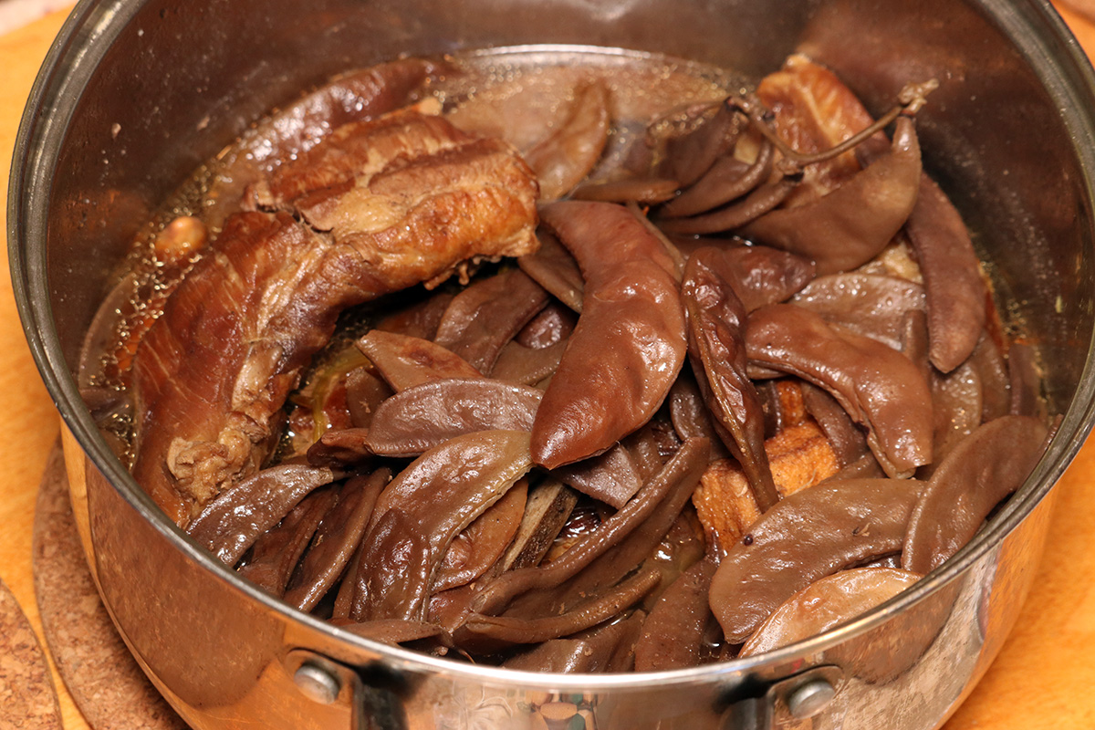 for dinner we tried the haymarket kimchi that i bought. it was okay, i haven't had kimchi in a while. my father said it was sweeter than usual. my father also need a rib stew with frozen hyacinth beans he found in the freezer.