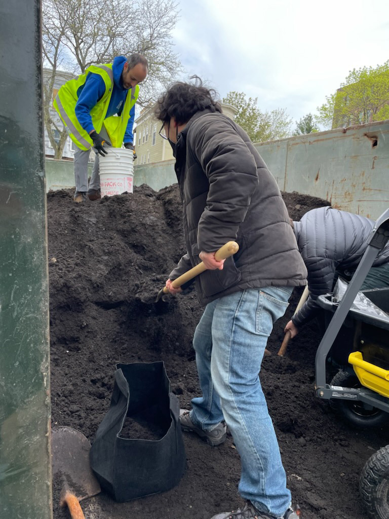 i woke up at 8:30am so i could get ready and meet my sister at the cafe at 9:15am so we could go pick up some free compost at squirrel brand park. i didn't have any good containers, and i wasn't sure how much exactly was 20 gallons of compost per household. i had a large cardboard box and two 10-gallon black grow bags. i also grabbed some leaf litter bags. i stopped by the community garden to see if there were anymore free grow bags but they'd all been taken.