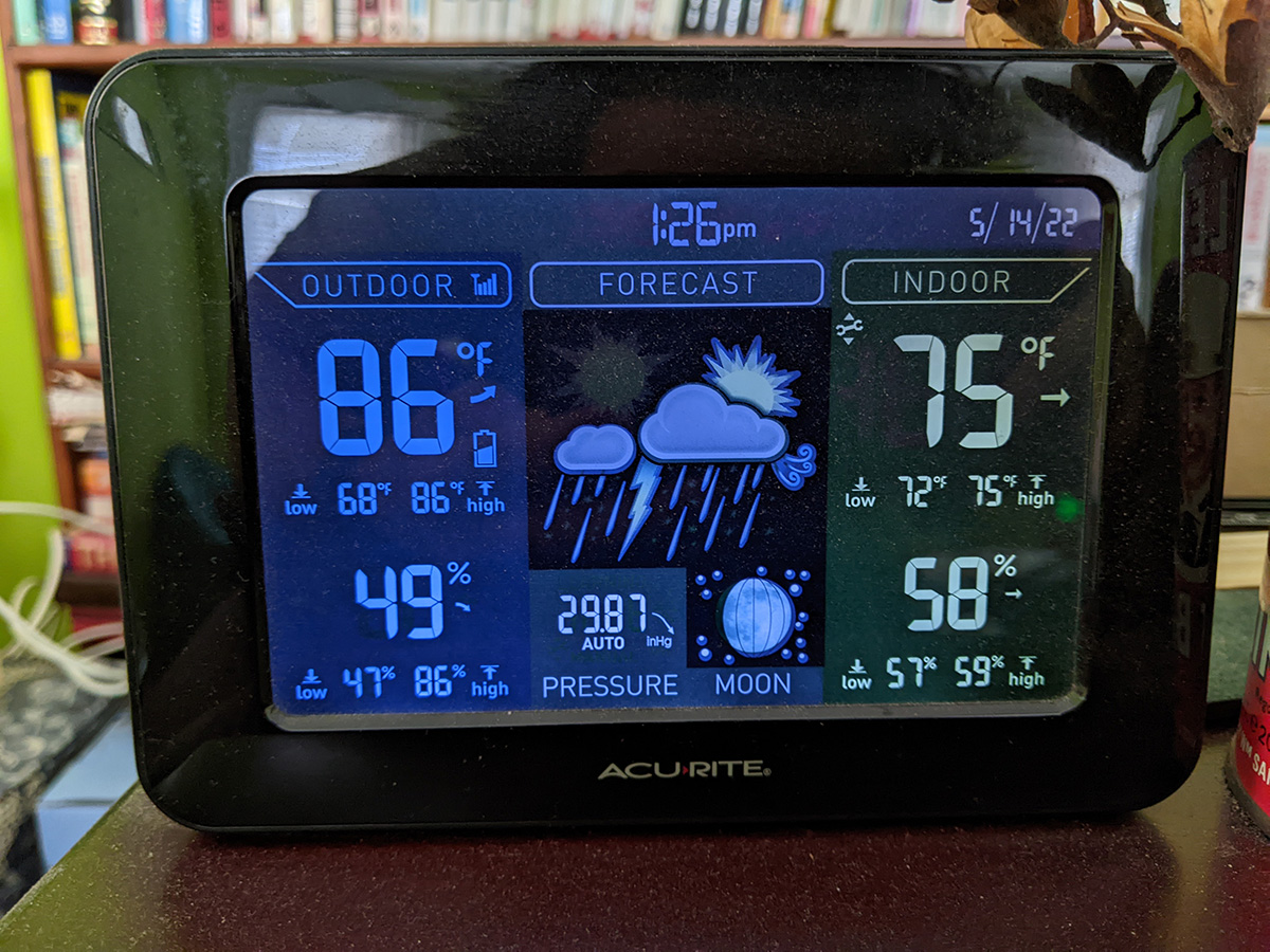 the temperature today hit 87 degrees, just a few degrees shy of heatwave weather. it tied for the hottest day on record for this day. normally this time of the year the daytime average is supposed to be a pleasant 66 degrees. not only was it hot, but it was also humid, which made me yearn for winter already and it's only mid-may. at least the hot weather is good for plants.