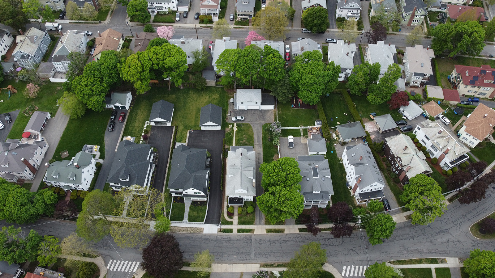 i flew the drone for a short 10 minute trip, go as far as cushing square before my RC connection started to break intermittently and i brought the drone back home. from the sky i spotted a very large japanese maple i'm going to check out in person one of these days.