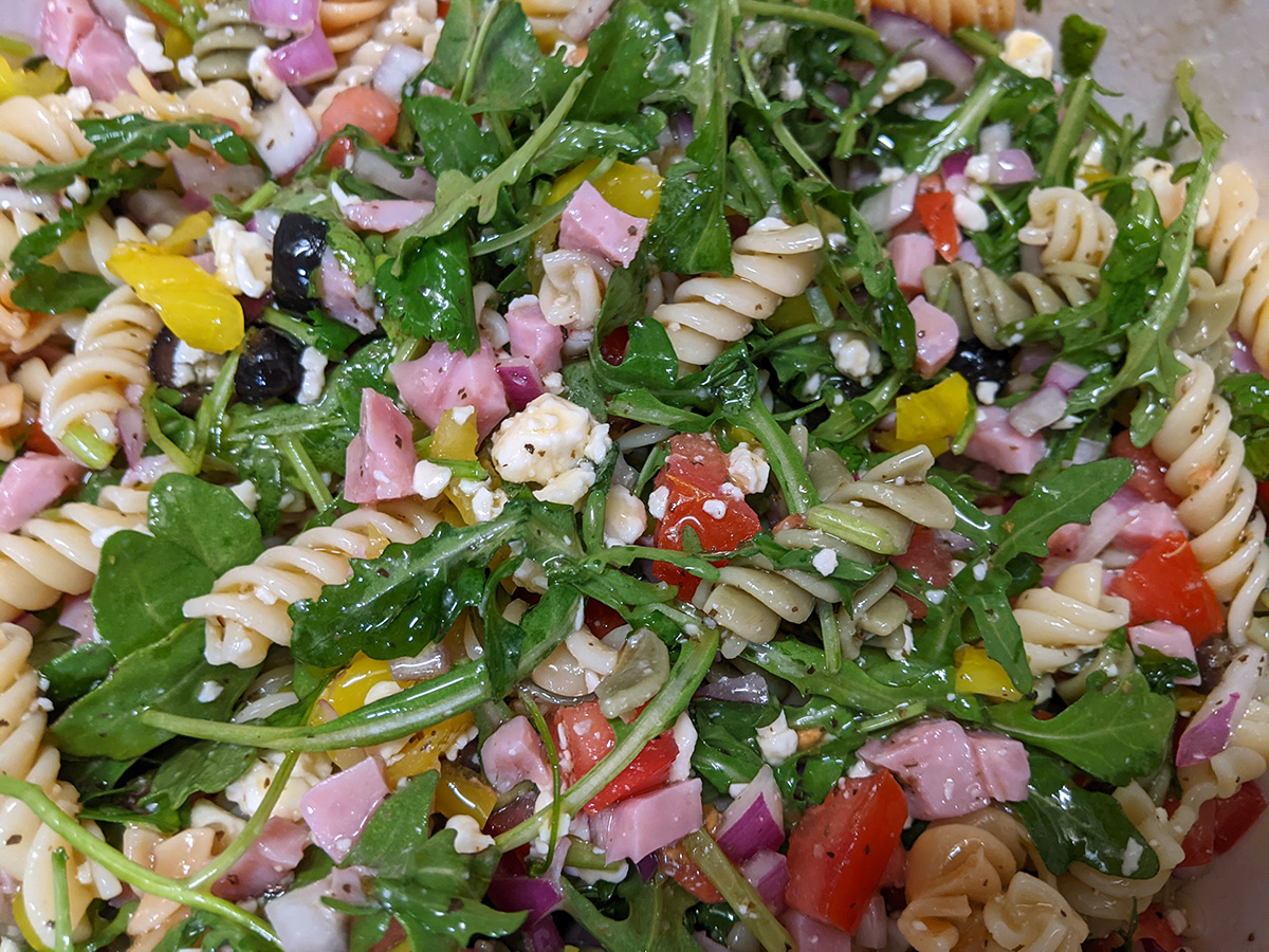 1 cup black olives, chopped 1 cup fresh arugula 1 cup pepperoncini, chopped 1/2 red onion, chopped 1 cup cilantro, chopped |