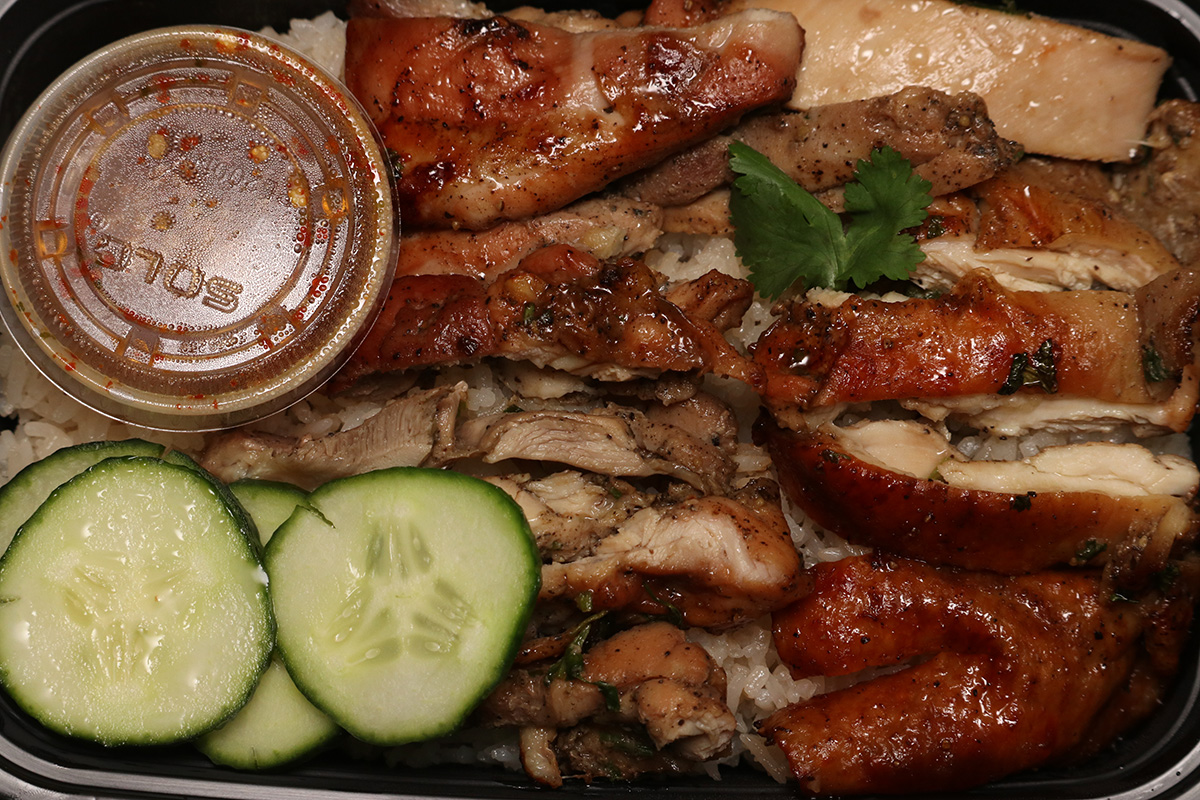 around 5:30pm i ordered some thai chicken & rice online. the order was supposed to be ready by 5:50pm, but when we went to go pick it up, once again the order wasn't ready, just like last time. the woman told me the chicken was still roasting, and it'd be 8-9 more minutes. i ended up waiting more than 15 minutes, so from the time i ordered to the time they made the food it took them 45 minutes, which is kind of ridiculous. the food's great; the service not so much.