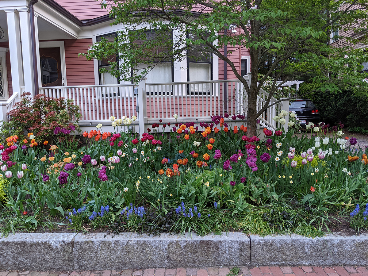 it was so hot i changed into a pair of shorts before leaving for belmont, first time wearing shorts this year. it definitely felt more summer than spring. on linnaean street i caught a glimpse of an old 3-speed bicycle somebody had thrown out. i was tempted to check it out, but the logistics of getting it home was too complicated so i didn't bother. by the time i made it to my parents' place, i was a sweaty mess. i noticed that neighbor's house we saw last week (listing for over $1 million) already had a sign on the front lawn saying "sales pending." that was quick! i wonder if there was any kind of bidding war, and if the buyer will tear down the old house or just do some light renovation?
