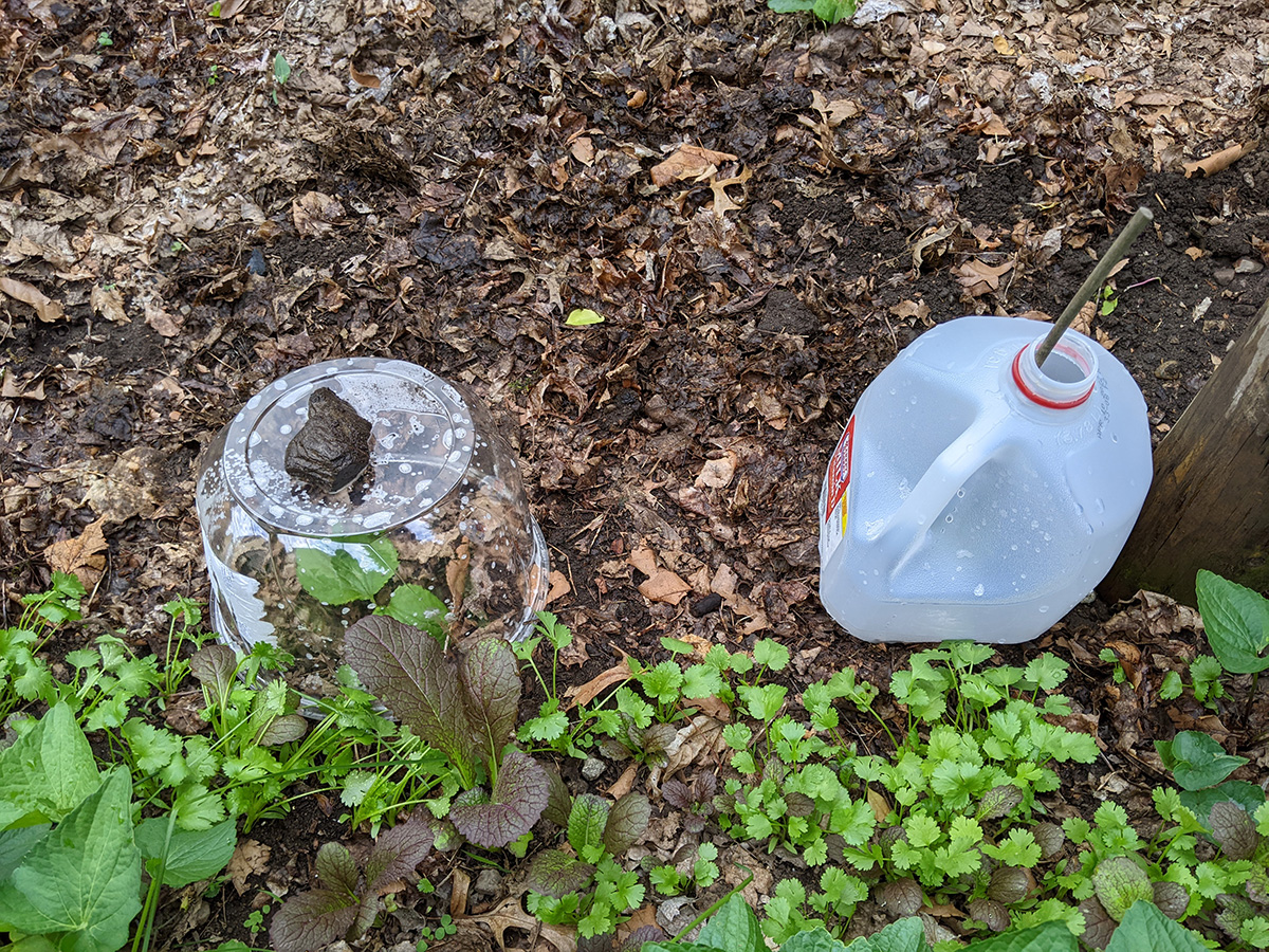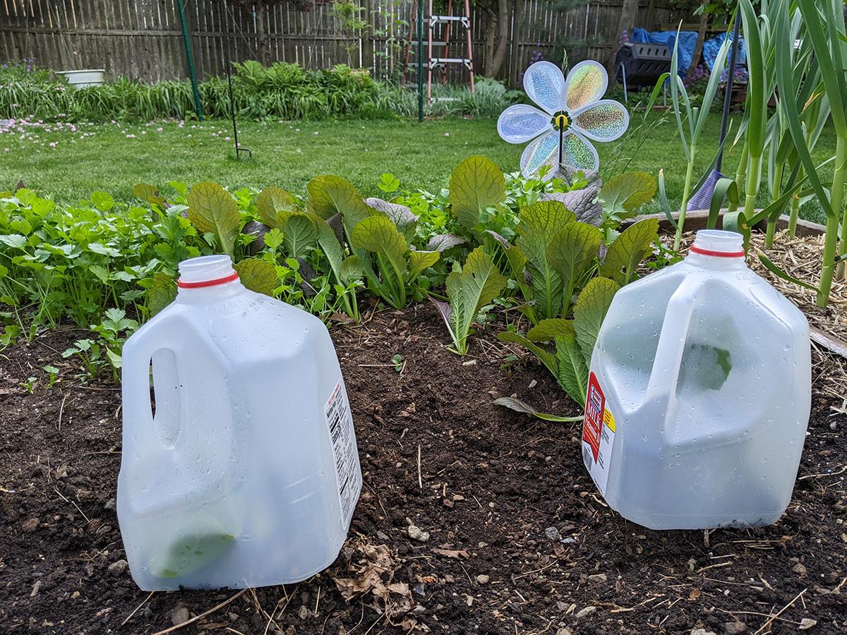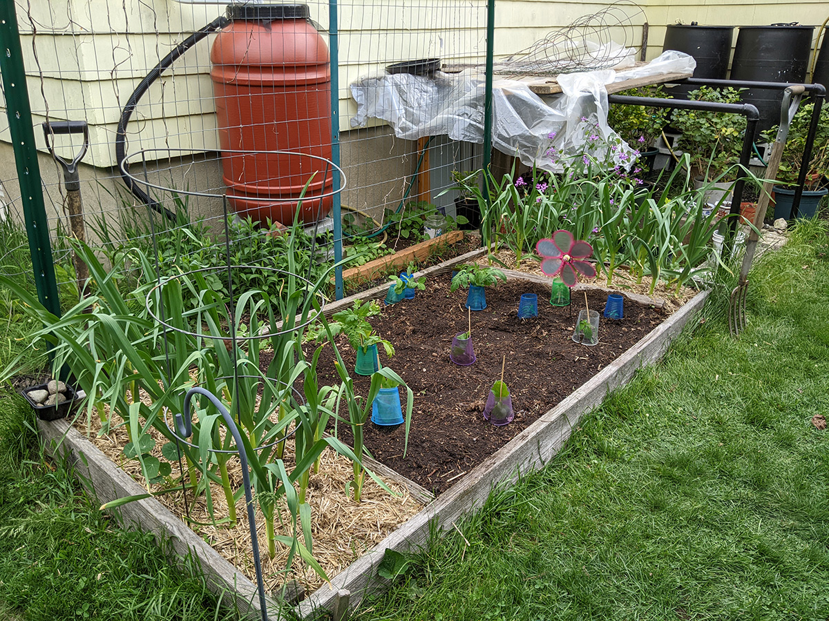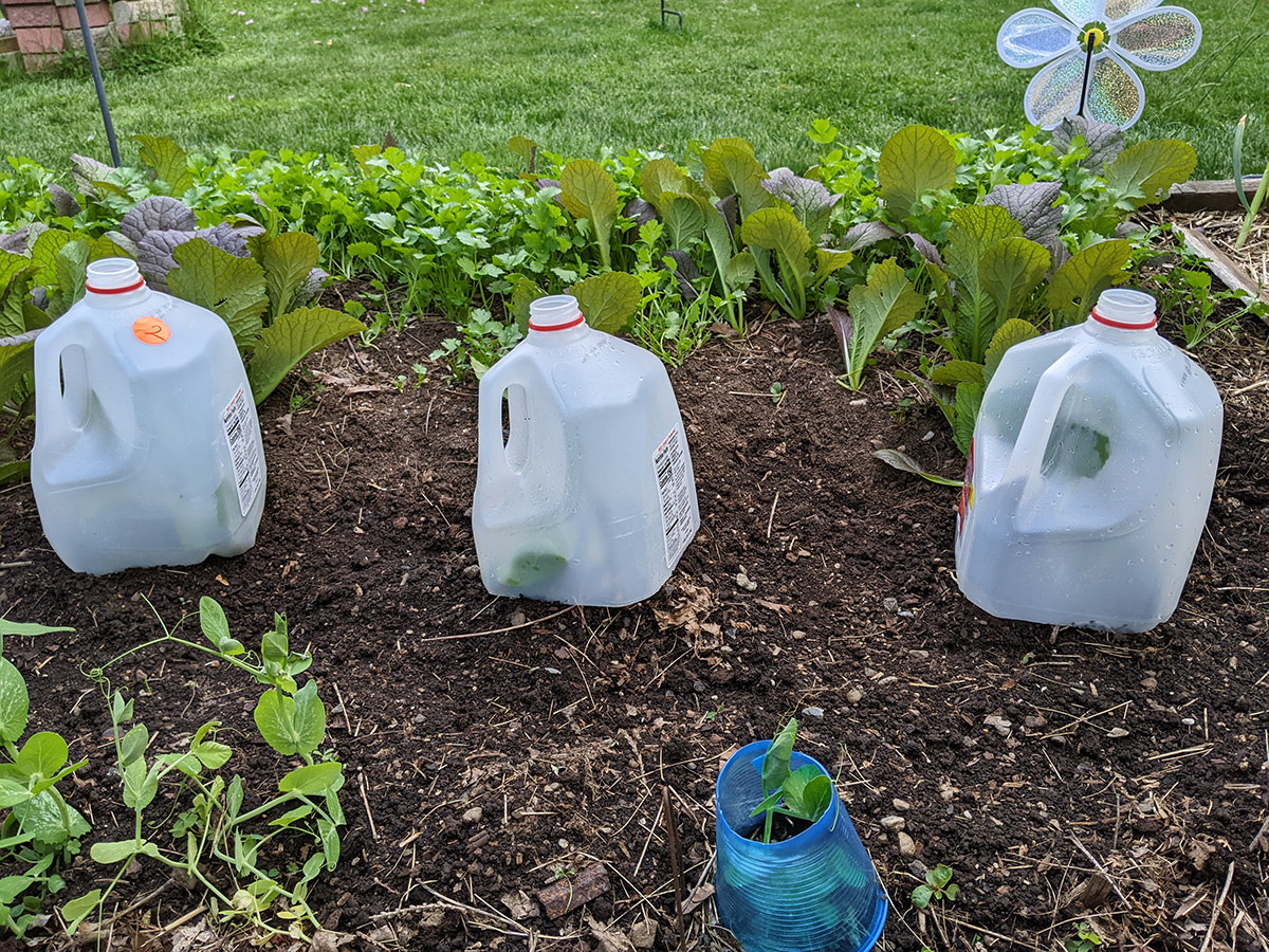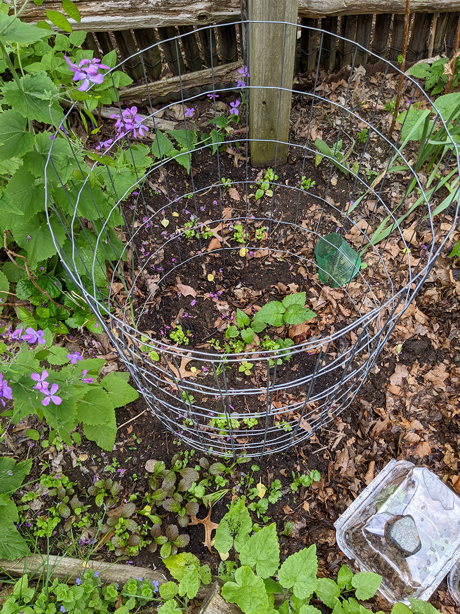 we tilled RB4 and planted the following: 2 tomatoes, 3 eggplants, and 4 hot peppers. i made sure these newly planted seedlings as well as the ones from yesterday were well protected from rabbits and other critters looking to make a meal of them.