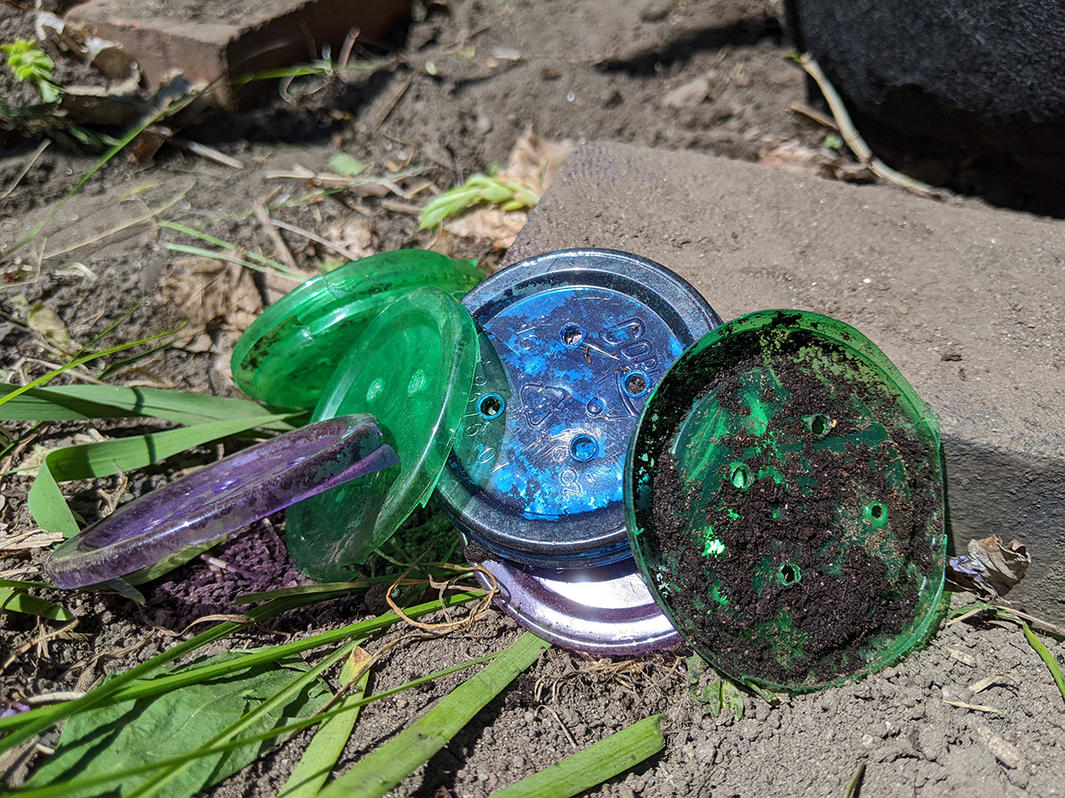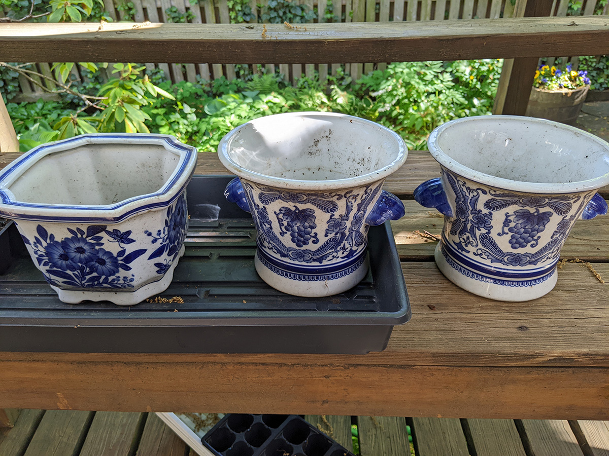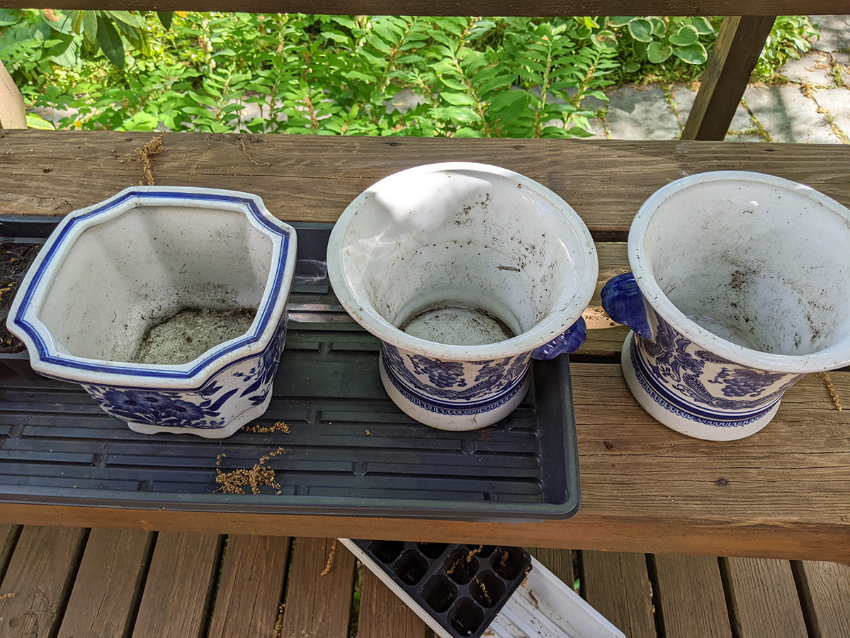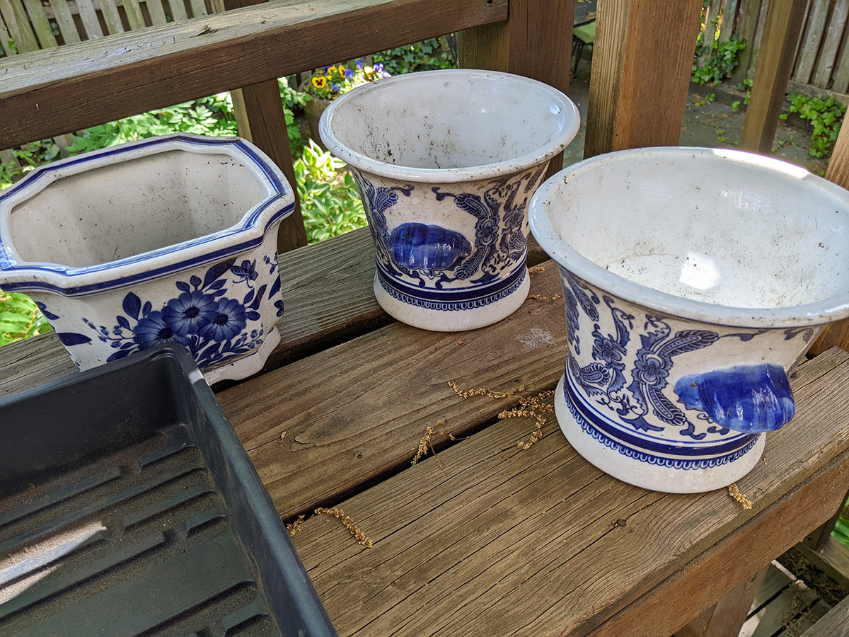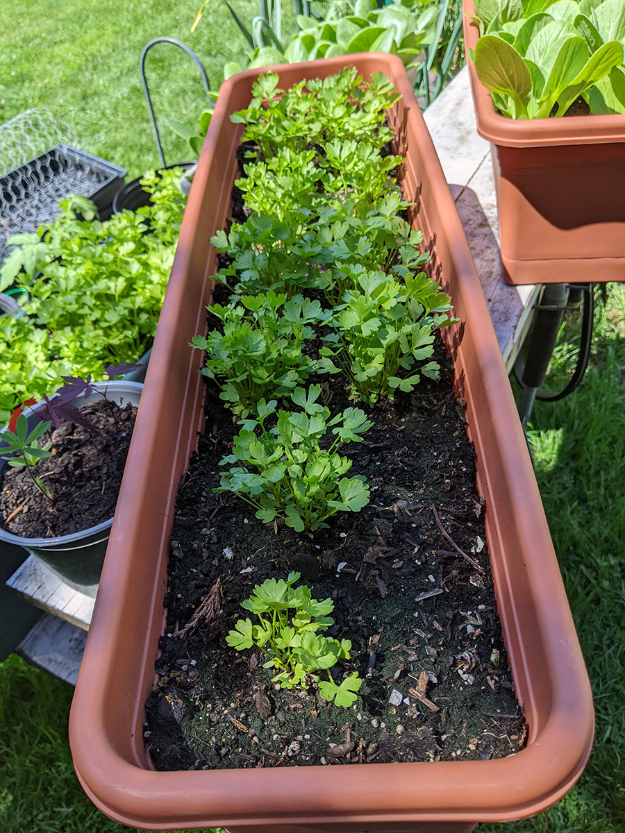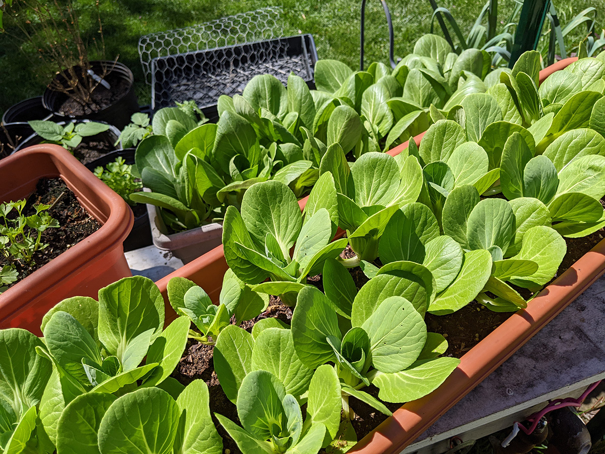 i got to the community garden by 11:20am. i spent the next 3 hours terraforming my plot. i tilled the soil and got rid of all the wild sedum, mint, grass, and some other random plants. i also pulled up the money plants, there flowers were mostly spent already, and if i wanted more there's plenty in my parents' backyard. i pulled up the old posts and wire trellis, and installed new 5ft tall u-posts. not only did i install my trellises vertically, but i also realigned my grow bags so they were vertical as well, allowing me to further extend the trellis by 1-1/2 ft. i hooked the plastic trellis netting onto the posts. it's supposed to be 5x60ft, but they were more like 7-8ft tall. they're not the best trellis material - especially after having used wire trellises - but they were sturdy enough and seem like they could last a few seasons, despite being delicate looking.