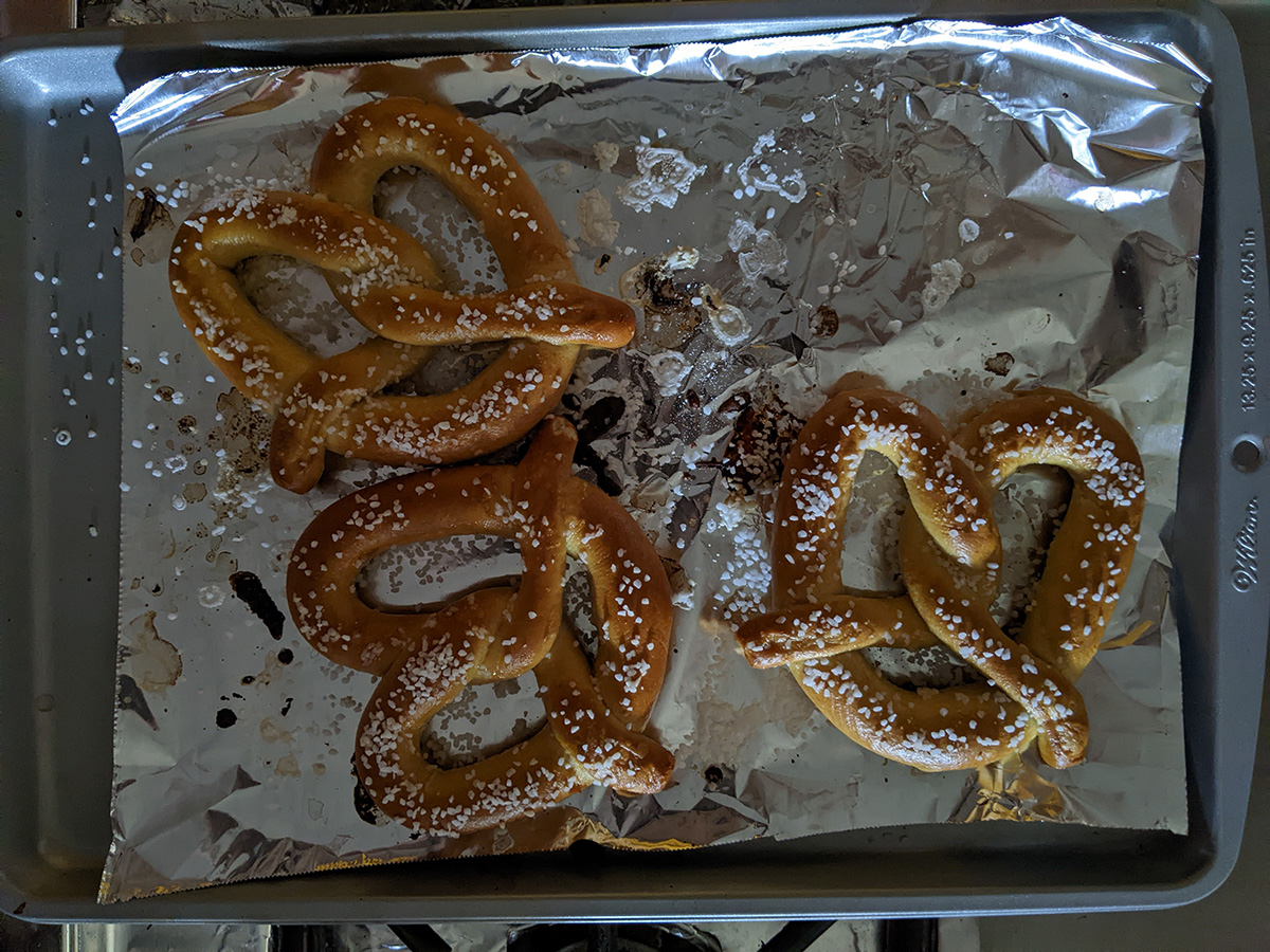 i hadn't eaten all day and only drank a diet raspberry snapple at the cafe. i took a shower and when i weighed myself afterwards, i'd already lost 3 lbs. from sweating. i warmed up a few frozen soft pretzels in the oven.