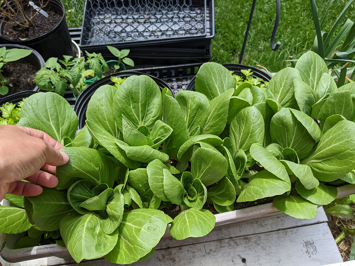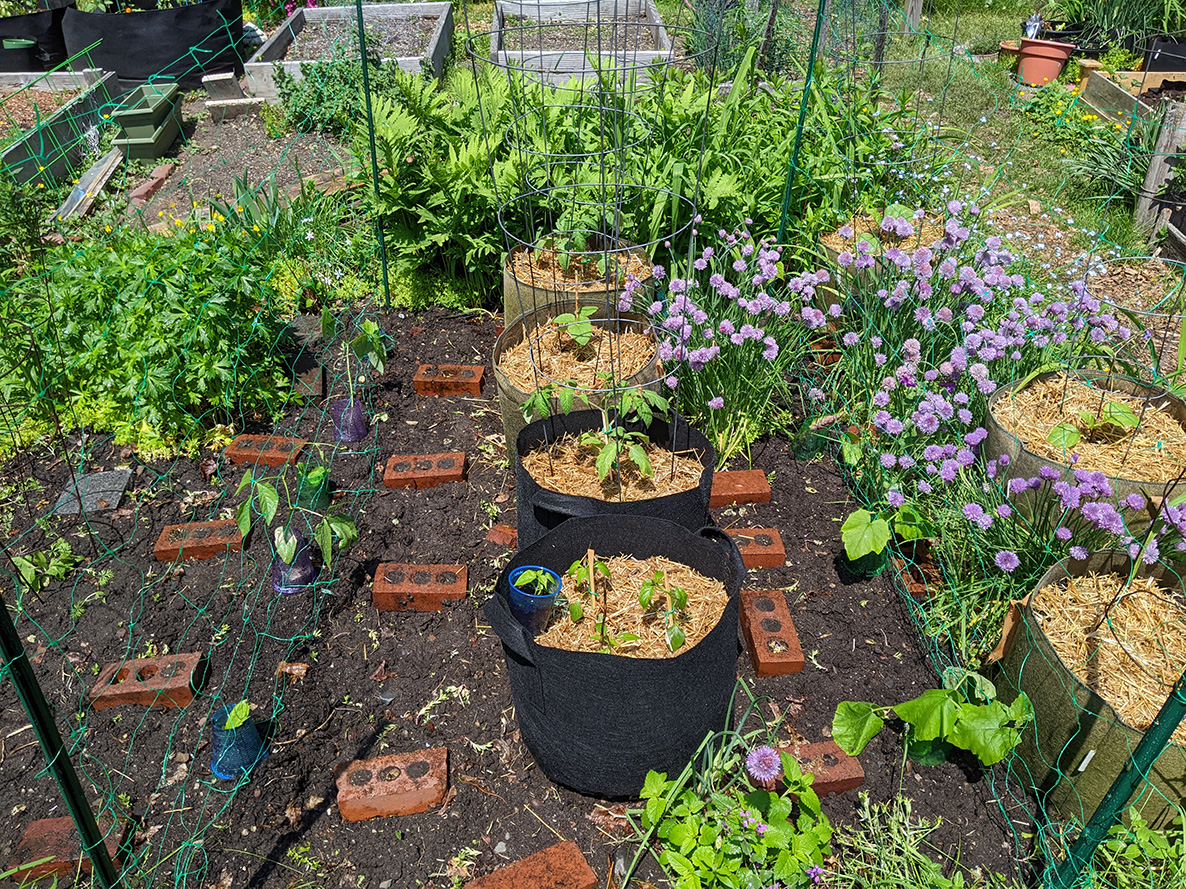 continuing home, i stopped by the community garden to water my plants around 12:40pm. ann - who earlier this week asked if she could have a bitter melon seedling - texted me this morning saying she didn't want it anymore and was returning it. she happened to be in the garden when i went there. she also had some questions about my bike, like my handlebar extender and my bike seat.