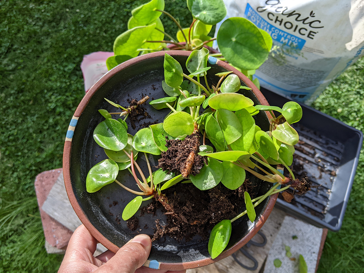 - i brought back the cafe pilea on saturday and had a chance to divide out the babies. from that one mother plant i managed to get 10 pilea babies.