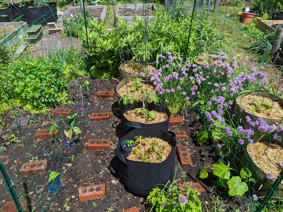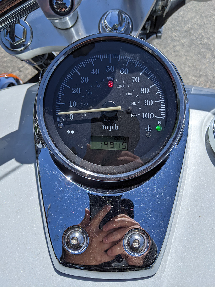 i packed some potting soil in a bag and put it in one of my saddlebags before leaving. i also brought along the new battery box and equipment, which barely fit in the other saddlebag.