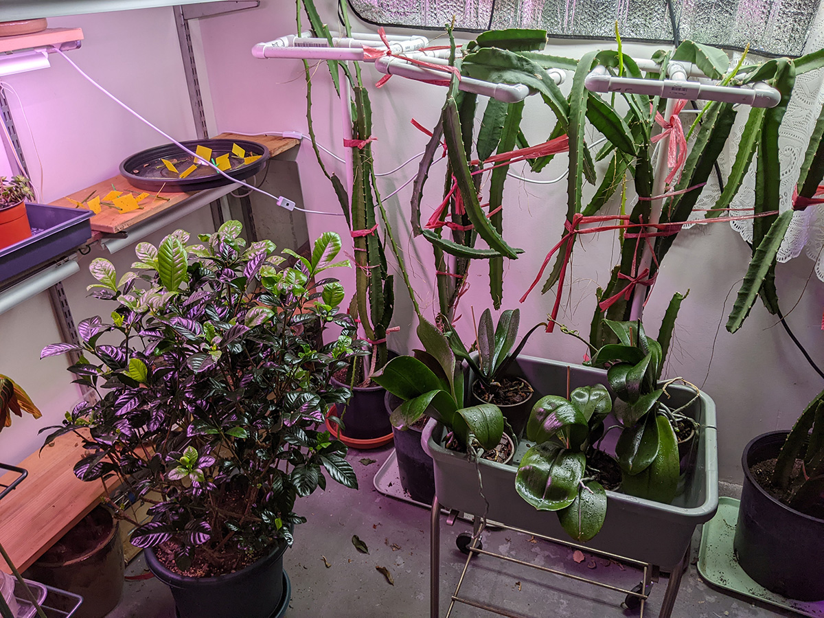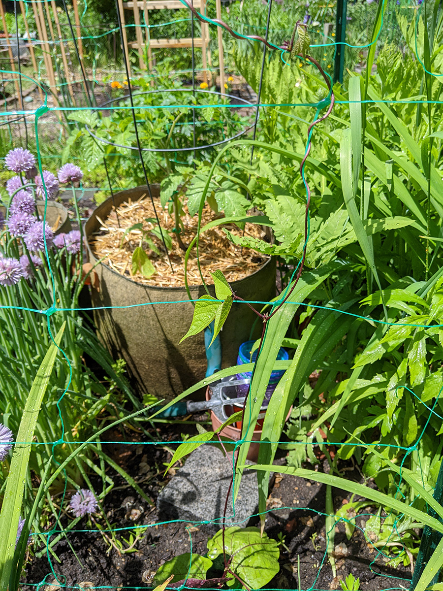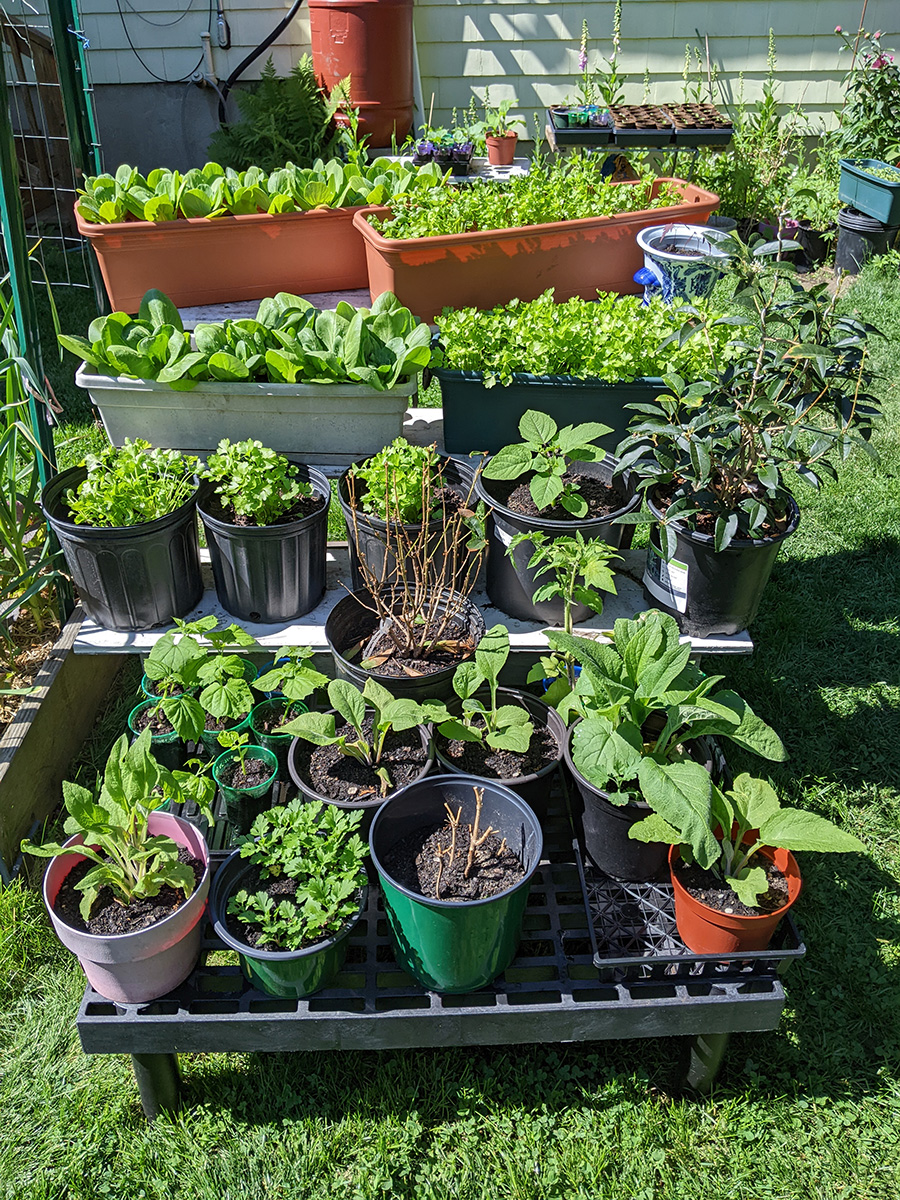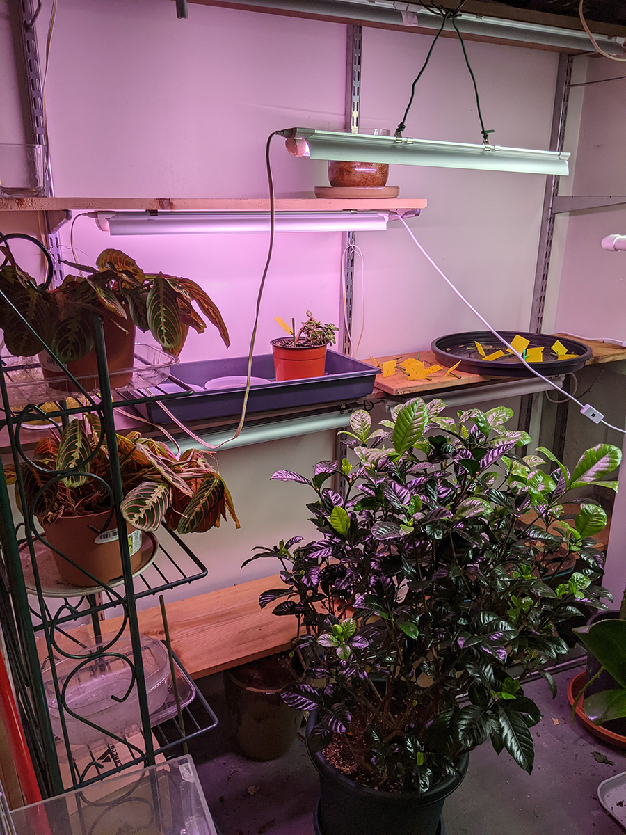 i wasn't in belmont to check out packages, but rather i was there to do some more garden work. i took out the orchids from the basement and watered them with some orchid fertilizer spiked water. i noticed there were some mealybug spots so i sprayed them with neem oil before rinsing everything off with the mist option on the spray head. i also took out the basement pileas and moved them into the sunroom; i'm looking to divide them as well this weekend. finally i planted all my nigella seedlings in the spot in front of the hydrangea. rabbits will definitely eating nigellas so i tried to protect them with some chicken wires.