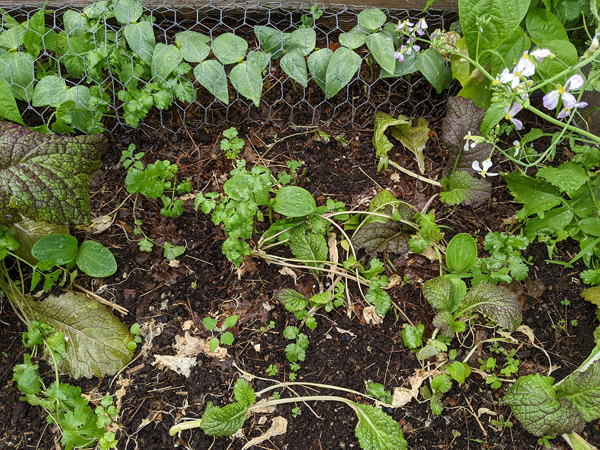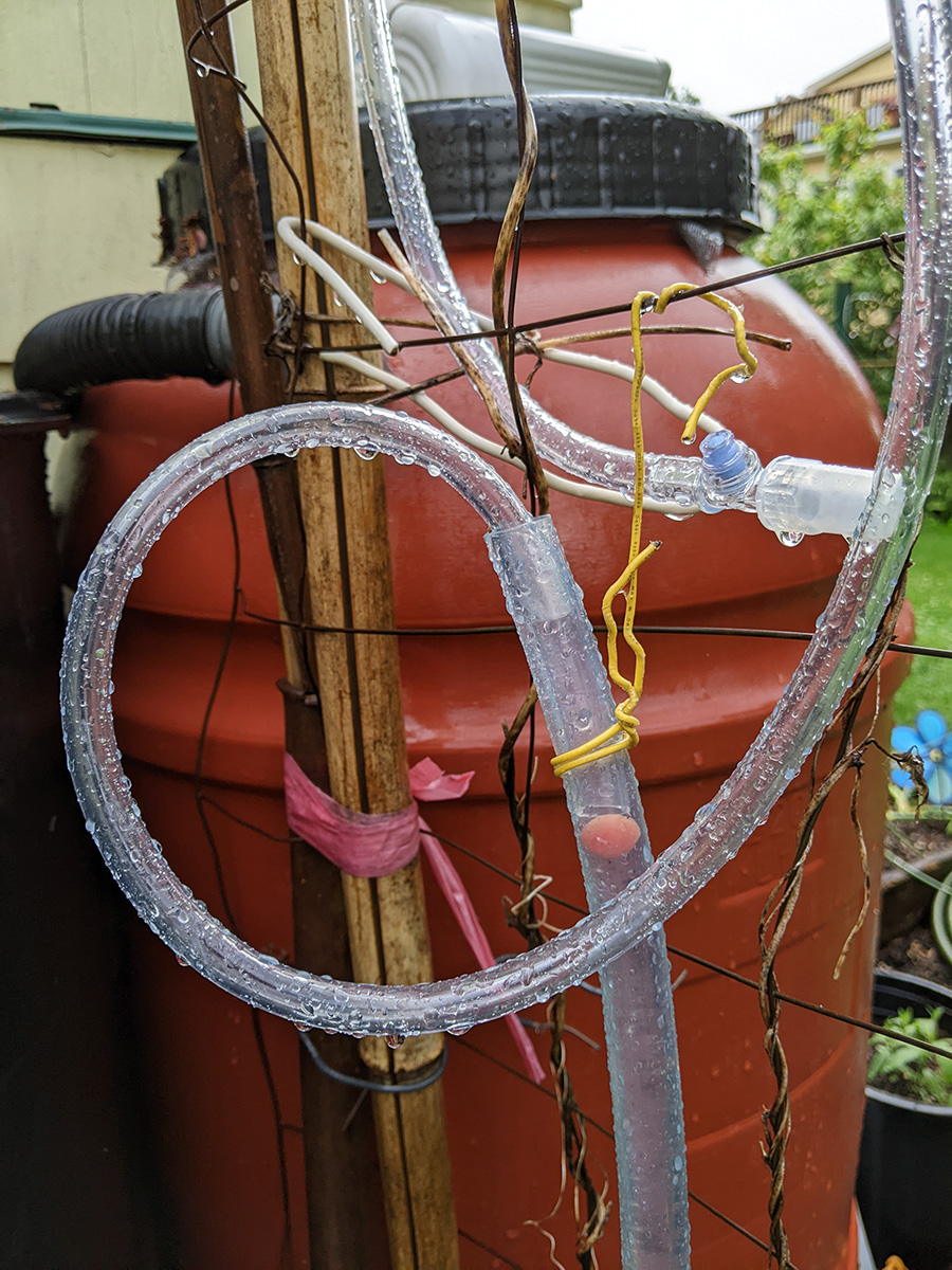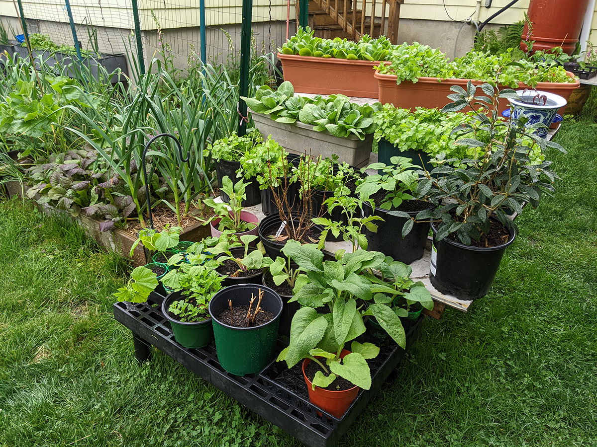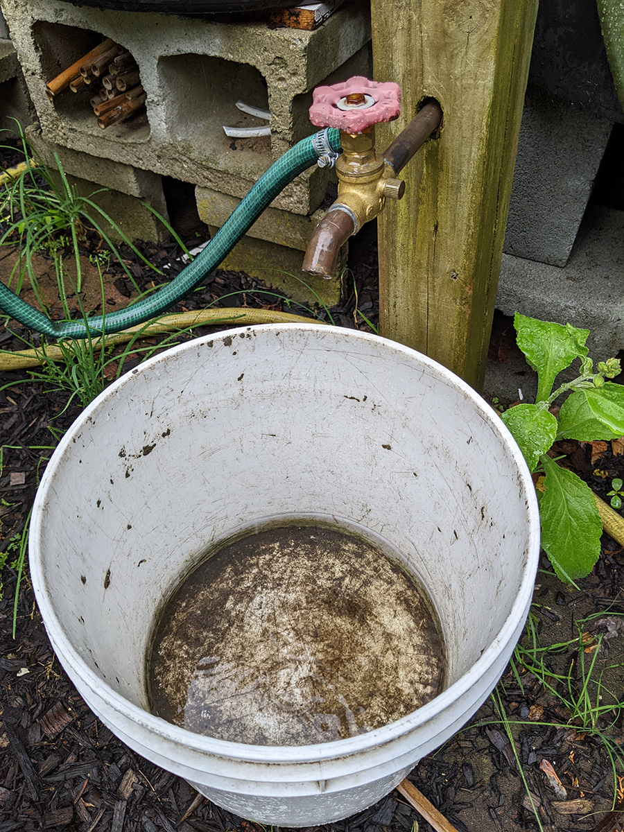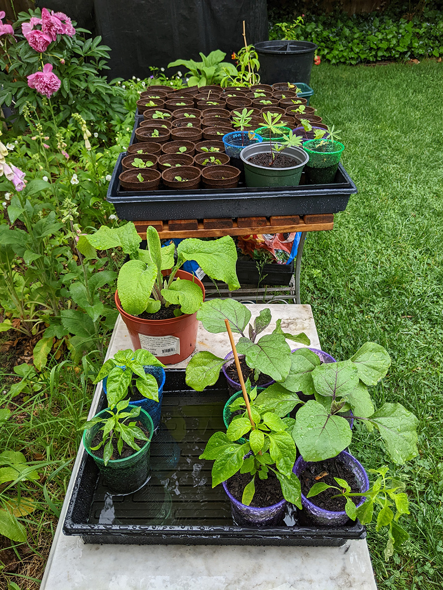 my father and i left after 4pm, while my sister stayed behind the cafe to mop the floors. when we got to belmont, first thing i did was to go out into the backyard and take out all my seedlings from the trays, which were partially filled with water (otherwise the seedlings would drown). i then checked the rain barrels, which were all full. by that point the rain was already starting to taper off, and i didn't even bother with an umbrella.