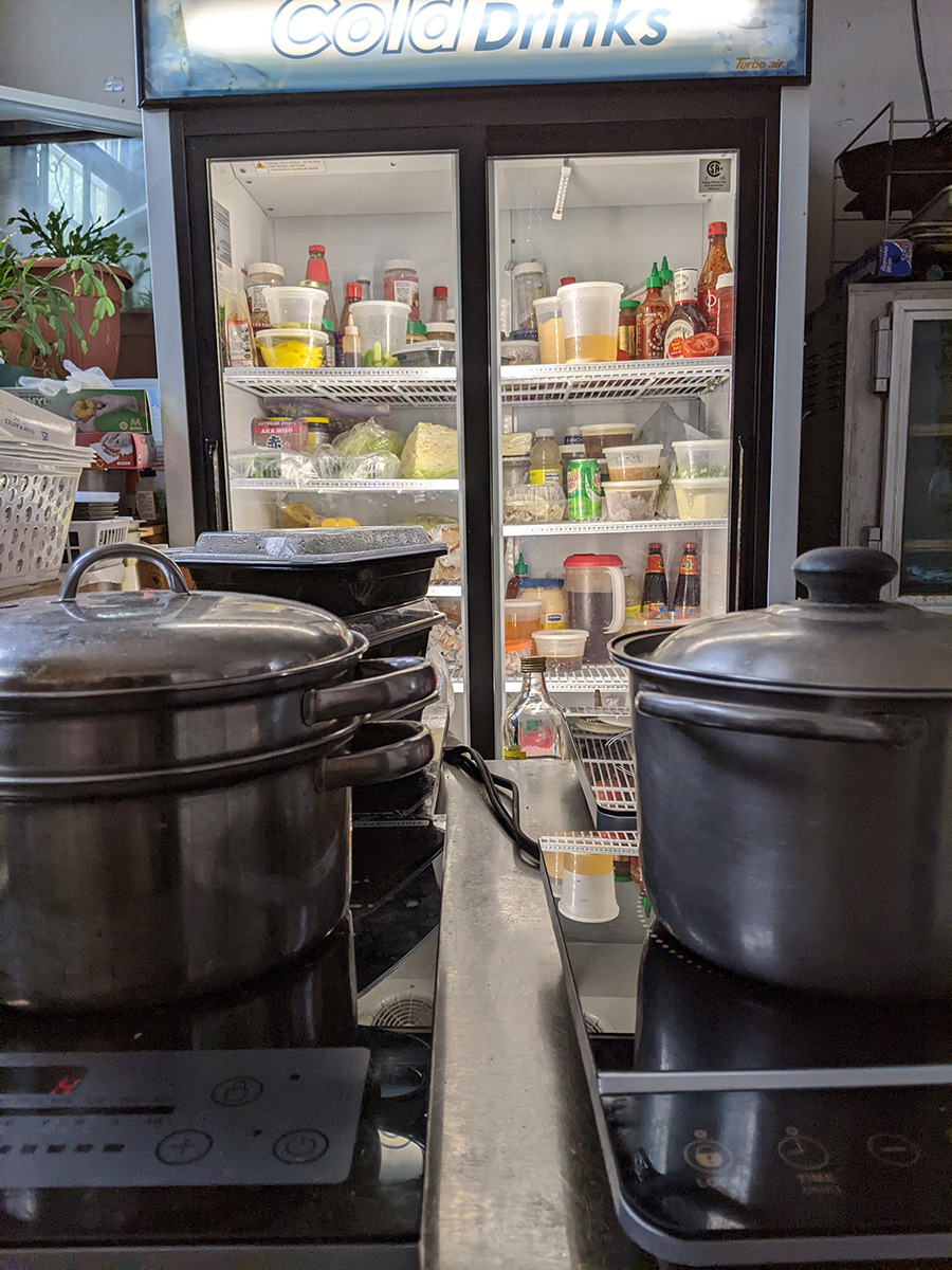 after that busy spell around noontime, things calmed down again. my father drove my mother back home, while he went to the waltham market basket to buy some pork to make some more charsiu. we had zero phone orders today, zero online orders for pickup, but one grubhub for delivery. compared that with last saturday, when we had 5 online orders.