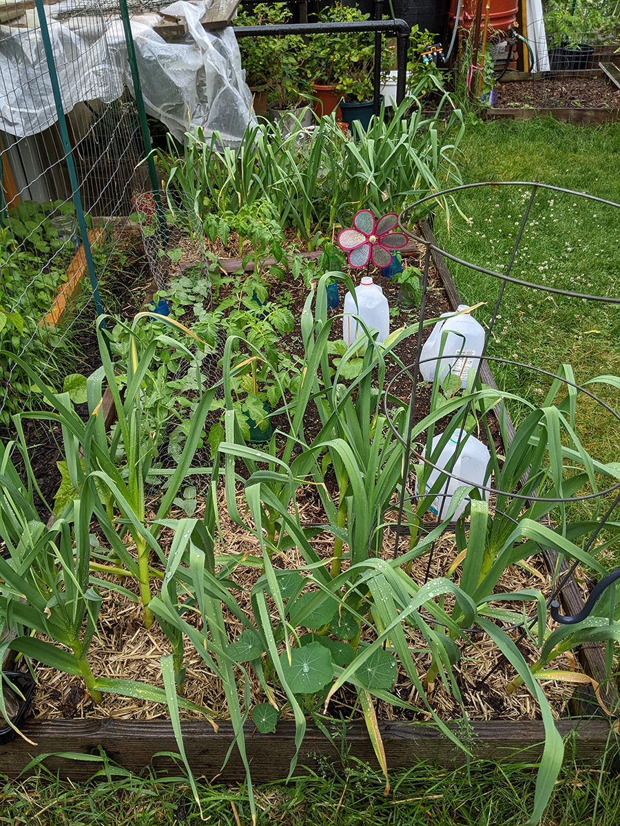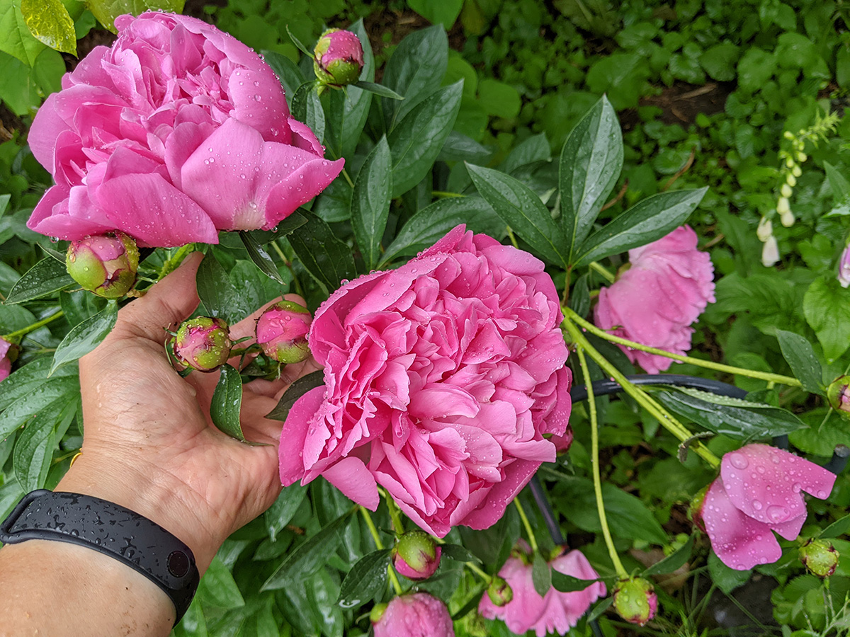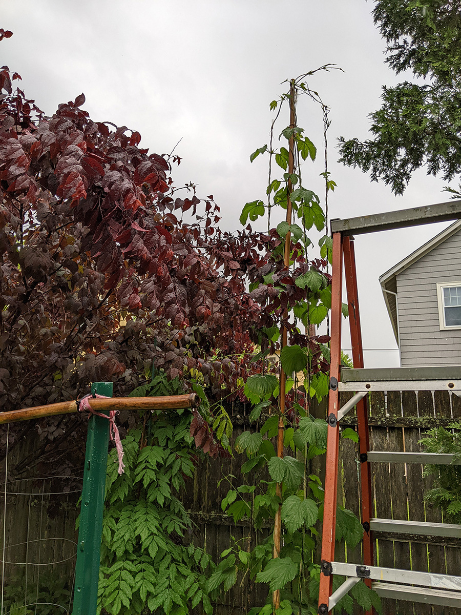 i was in belmont just on tuesday to do some yard work, and in just 4 days time, so much has changed. most of the peonies have flowered, though the rain caused the blossoms to droop down. the hop bines have overgrown our vertical trellis, i'm going to need to trim the tips to prevent them from growing any further.