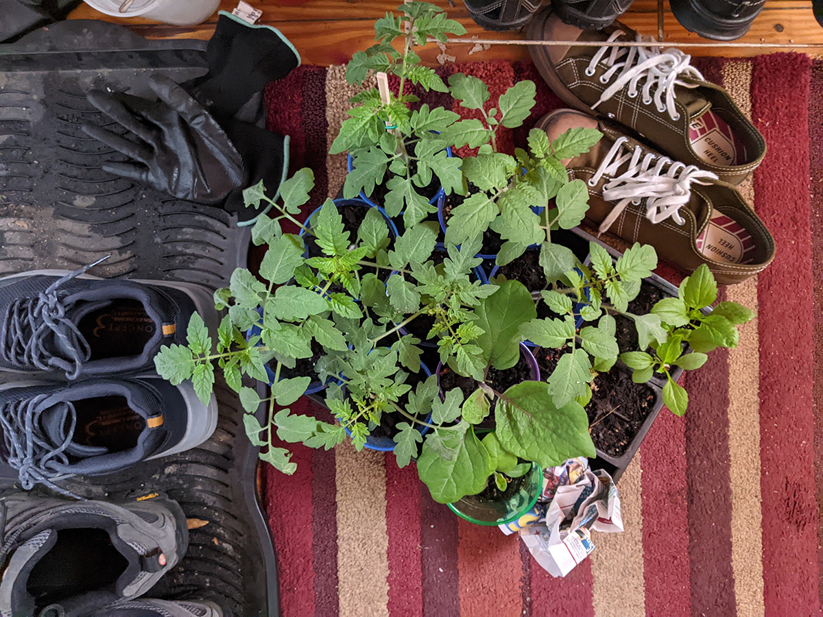 my father gave me a ride back around 7pm. we stopped briefly at the cafe so he could collect his cell phone. when we got to my place, i gave my father the carabiners i ordered online a few days ago, as well as a tray of tomato seedlings.