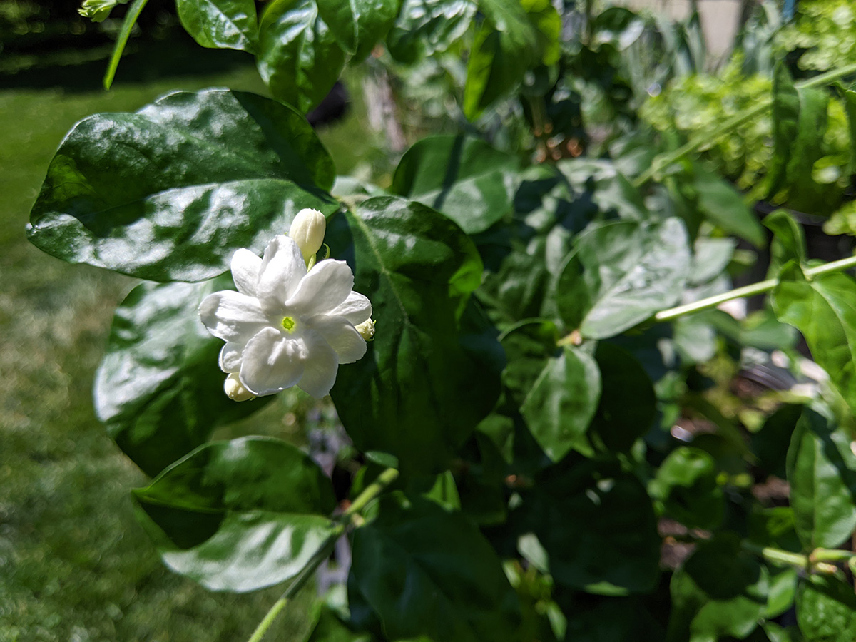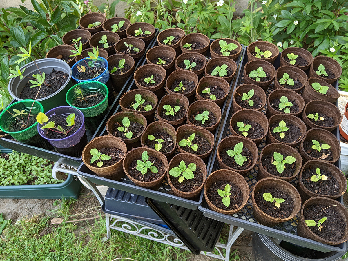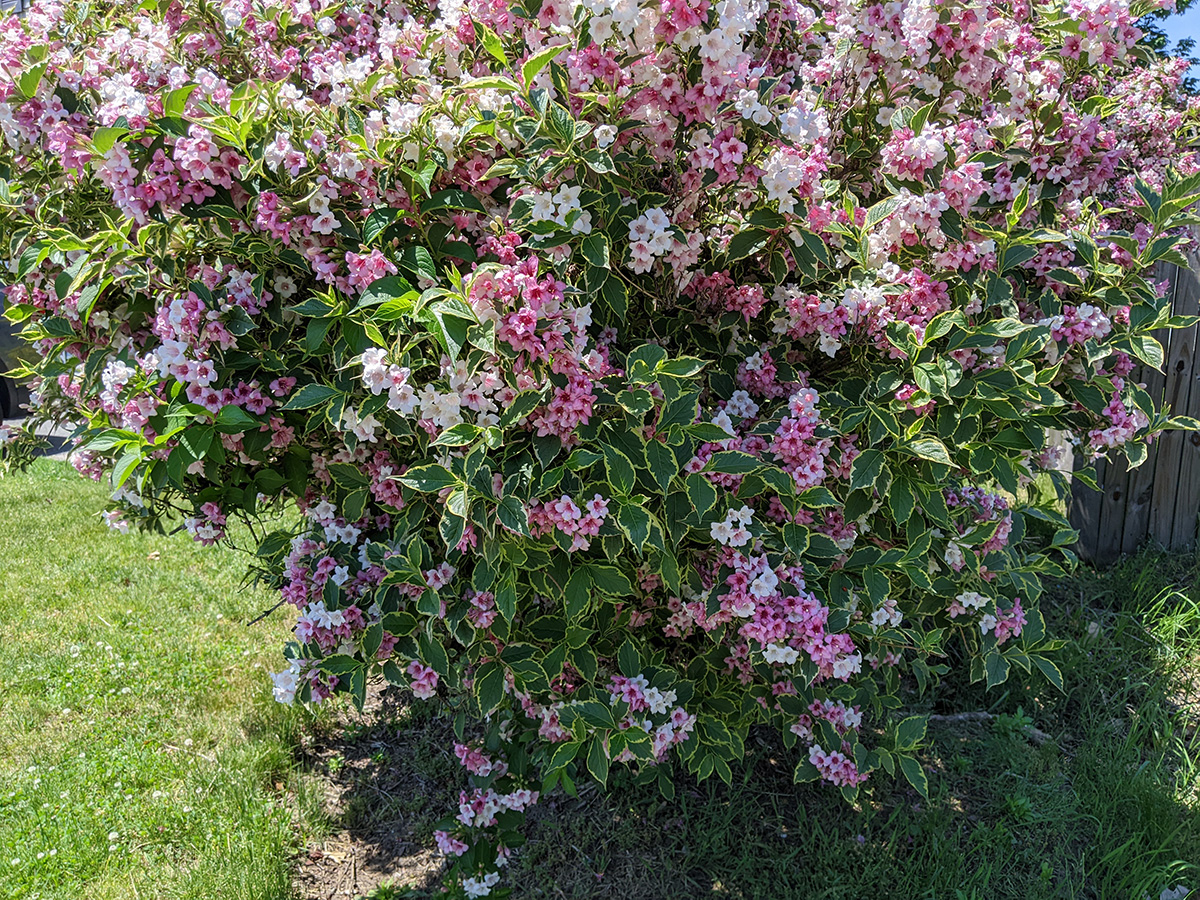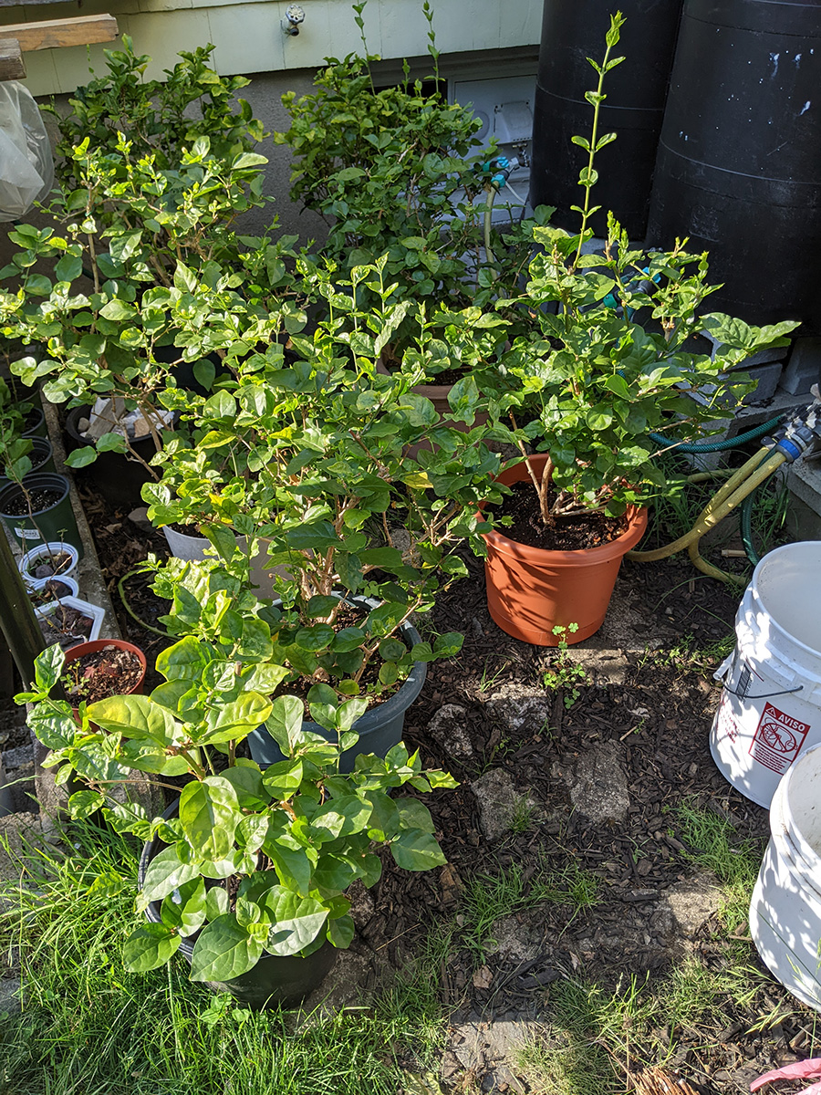 we continued with our yard work. we planted the white peony my aunt and uncle delivered on friday afternoon. we decided to put it in a spot behind the garage. i thought i'd have to relocate a lot of perennials when i dug the hole, but it only affected a single small foxglove plant. i wanted to put down some chicken manure but my father said it might be too much for the peony, so instead i put a layer of compost first, before sprinkling some osmocote slow-release fertilizer pellets. i then held the peony in place while my father shoveled dirt and i filled in the hole. there are severl large peony flower buds, i won't know if they'll bloom or abort. in the container that came with the peony was a eyeless peony root. i ended up planting it near the grapevines, don't know if it'll survive.