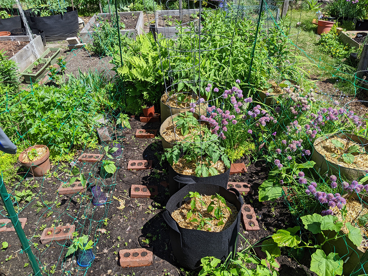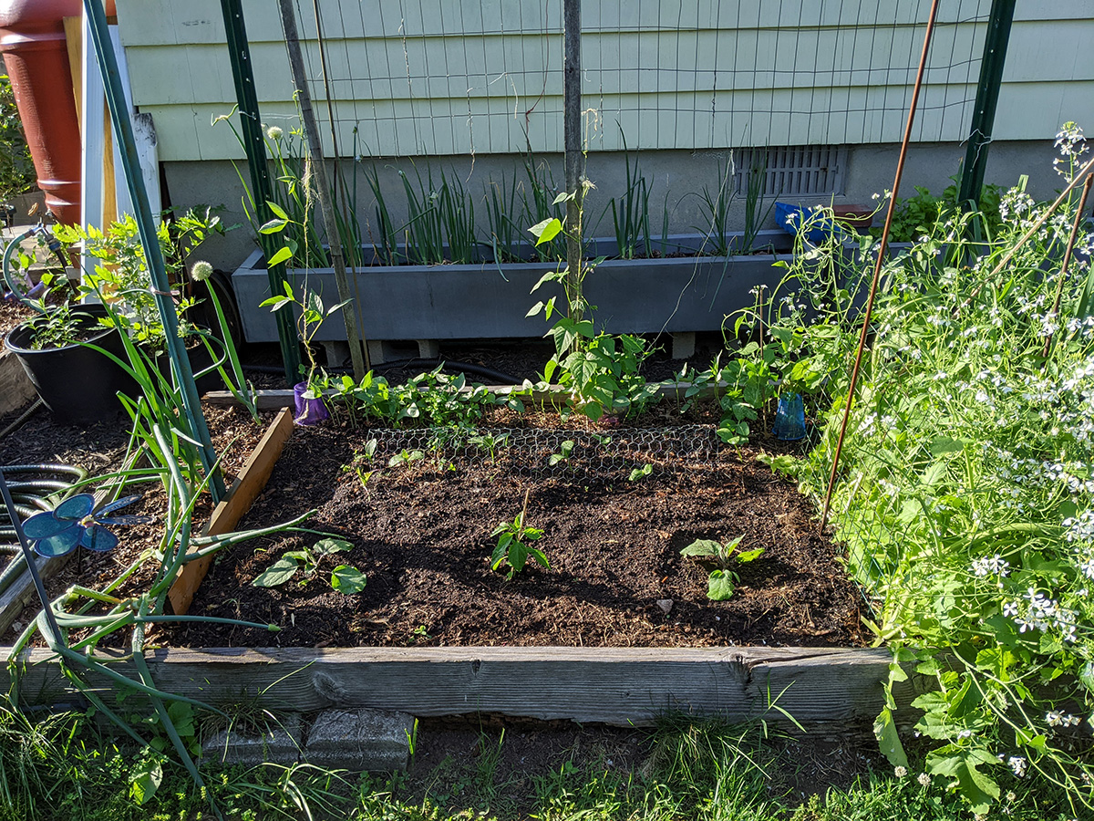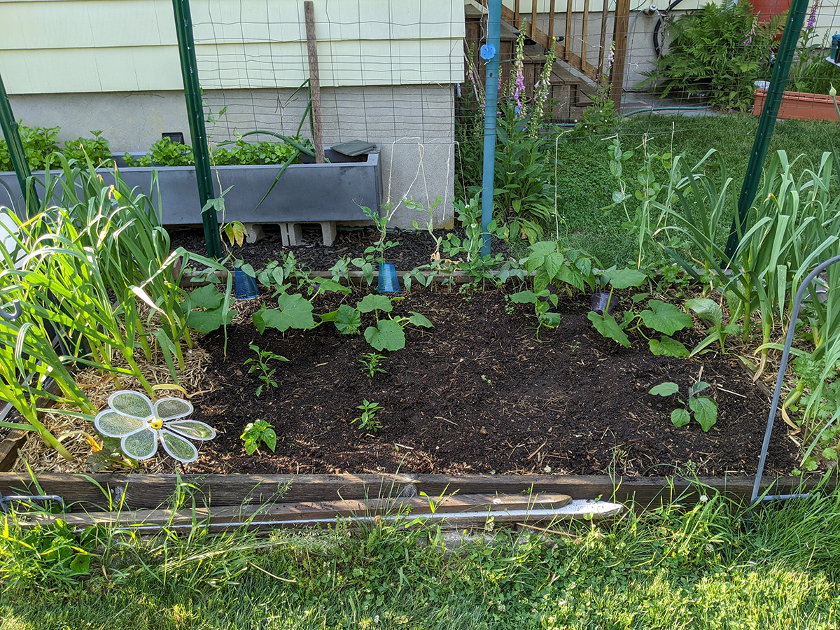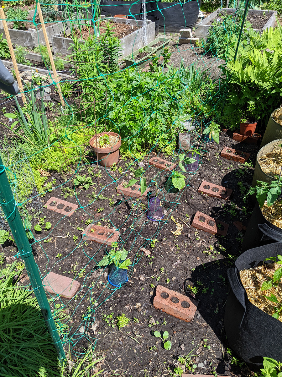 i decided to head out to belmont early, day 2 of memorial day weekend gardening. i paid a quick visit to the community garden first, to water my plants. i was surprised to see david, chatting it up with some gardening ladies. finally he asked me if i was the one who gave him the kugua (bitter melon) seedling a few weeks ago. "who else could it be?" i replied. ann was there as well, but seemed to be lost in her own world. i went to say hello to her before i left, i almost felt bad for disturbing her. i left for my parents' place directly from the garden via motorcycle.