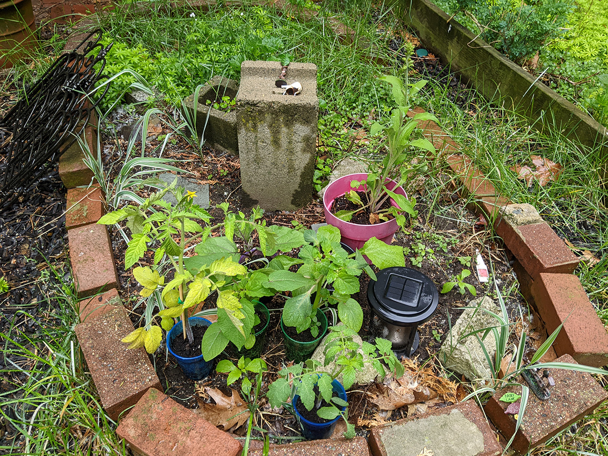 it was starting to look like it'd be a slow day again, especially given the weather, but we got a huge order around 12:15pm, and then it got really busy for the next hour. at one point my father was beckoning me to see a customer who said she knew me. turns out it was EJ and her husband tom, sitting out on the back patio. they ordered a zhajiang noodle and a minced pork bento, but we accidentally switched the order, poured zhajiang pork onto the bento instead. as a way of apologizing, my father gave them an extra order of minced pork with some rice. tom thought maybe i'd left the garden because my plot looked so different than in years past (that's only because i moved around some grow bags).