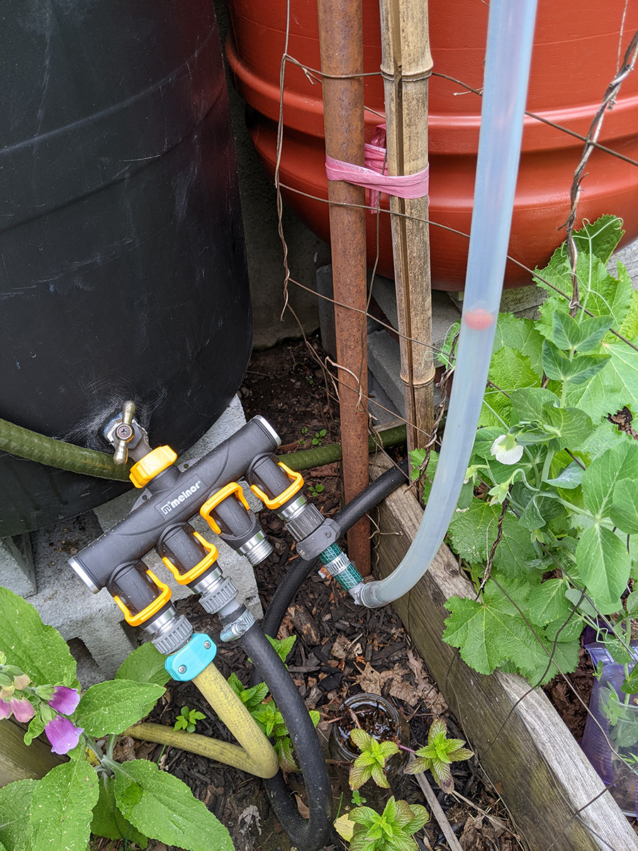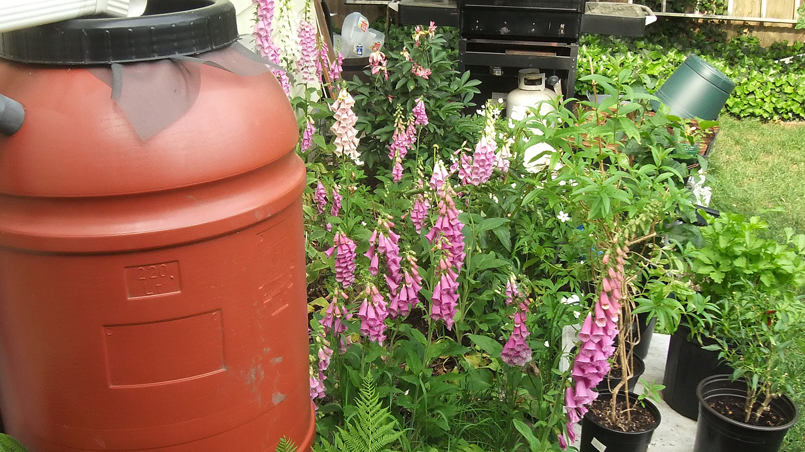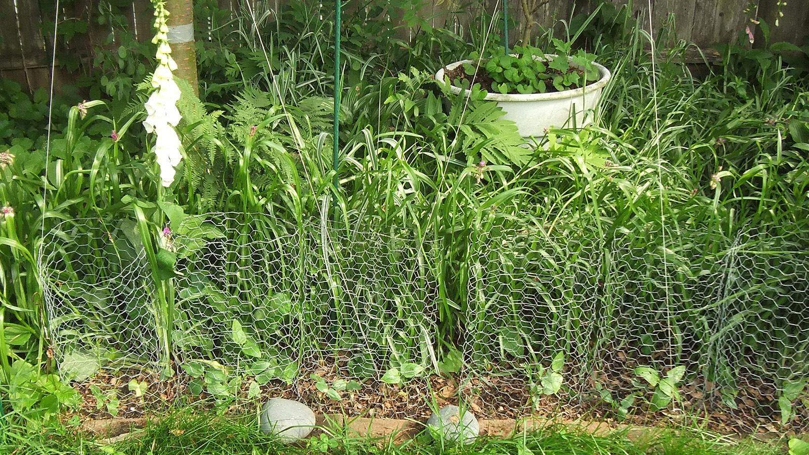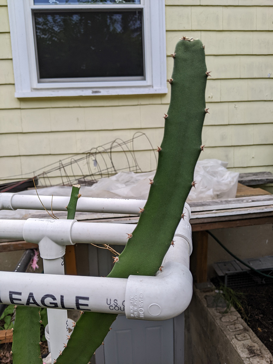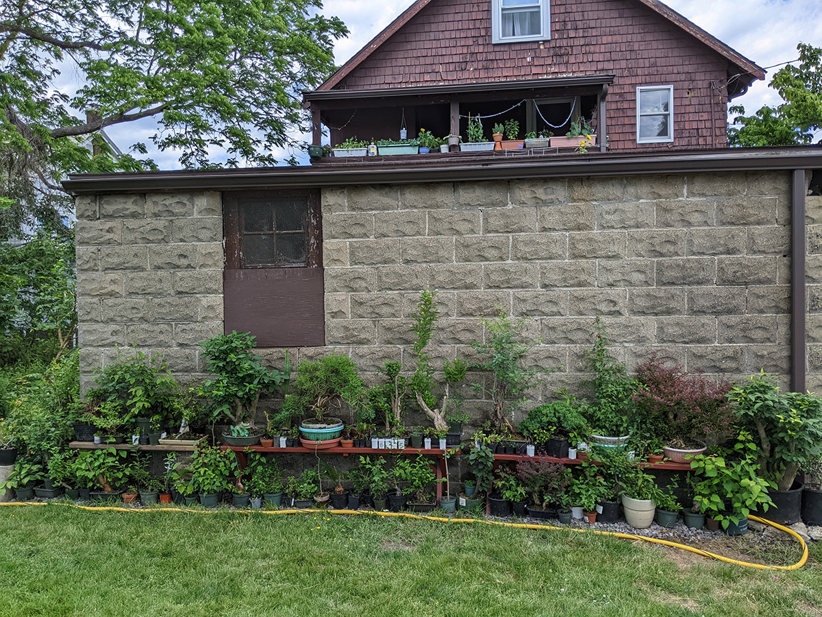 my father also set up the trellis on the western side of the house, putting a layer of my cheap plastic green netting for additional support, and also running twine to the climbing bitter melons and squashes. we even saw 2 new emerging squash seedlings, hopefully chipmunks don't dig them up like they did in RB2. speaking of which, i put out the live animal trap near the faucet, hoping to catch a chipmunk and then release it elsewhere. however, i didn't put any bait, i'll have to add something tomorrow.