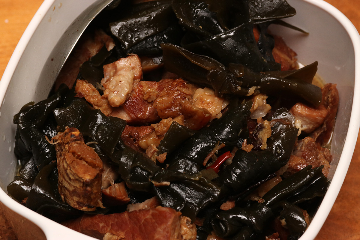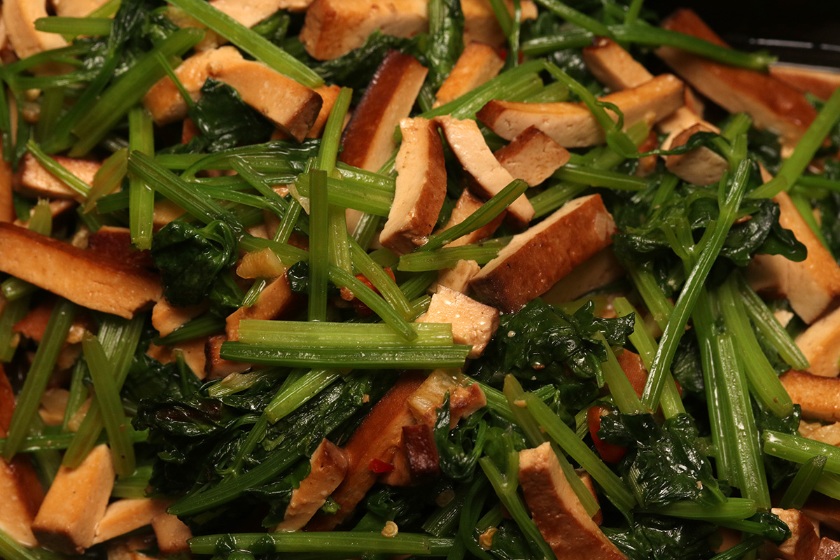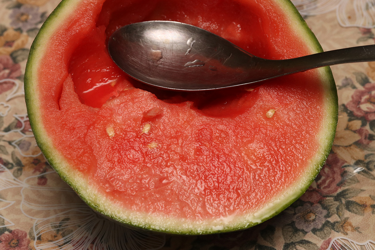 my farther harvested a bunch of chinese celery for dinner, which my mother cooked as a stirfry with tofu. all parts of the plant have a strong celery flavor, but the leaves are bitter, so next time we'll only use the stalks. my mother also cooked up a pork and seaweed stew. afterwards she cut up the baby watermelon in half and we ate it scoop-style with a spoon.