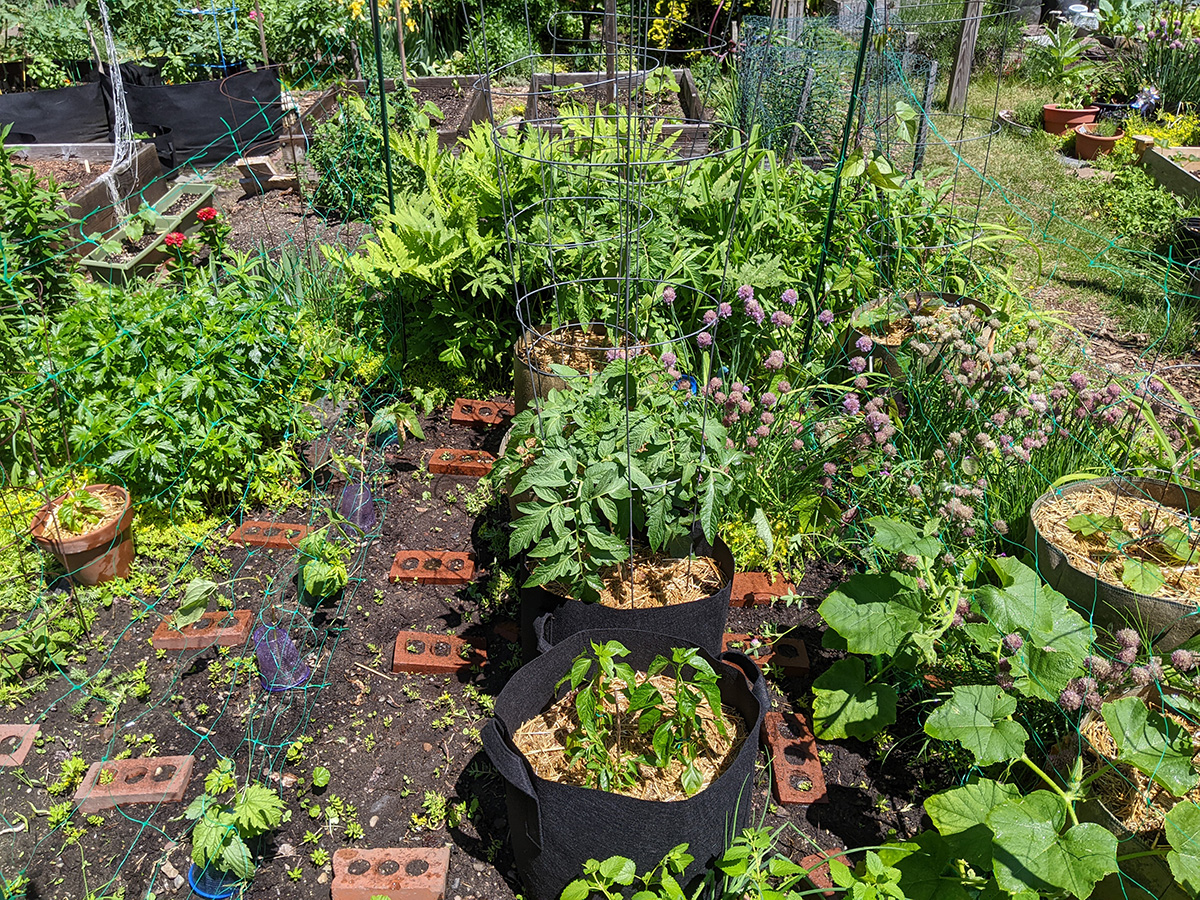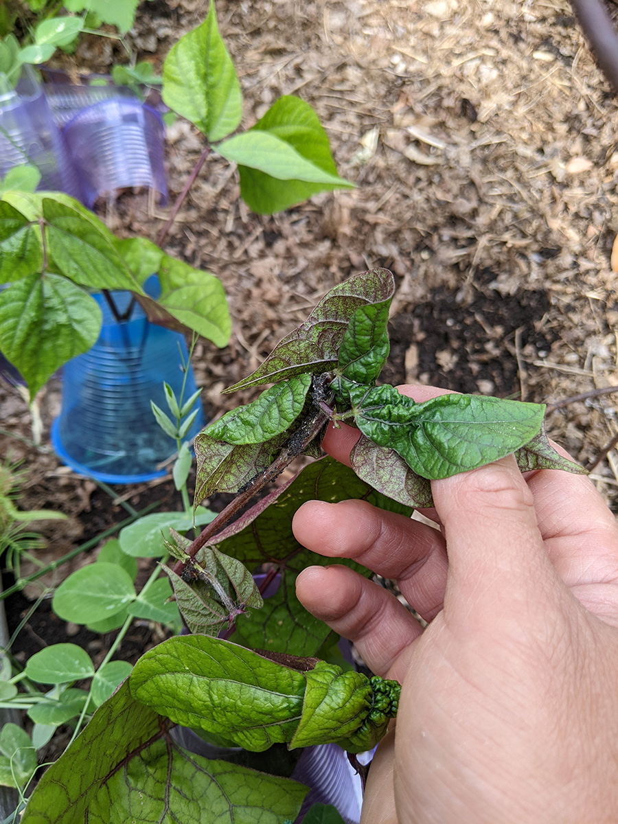 i noticed something continues to eat away at my eggplant leaves. it could be slugs, snails, or beetles. i need to come back at some point and re-apply the diatomaceous earth powder. likewise, my bitter melons are starting to suffer from critter bites. on the other hand, nothing seems to be eating my nigellas so far. if only my plants can grow fast enough to outlast the pests!