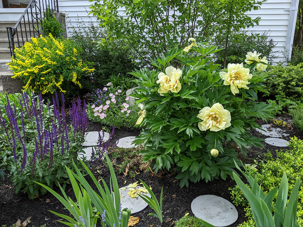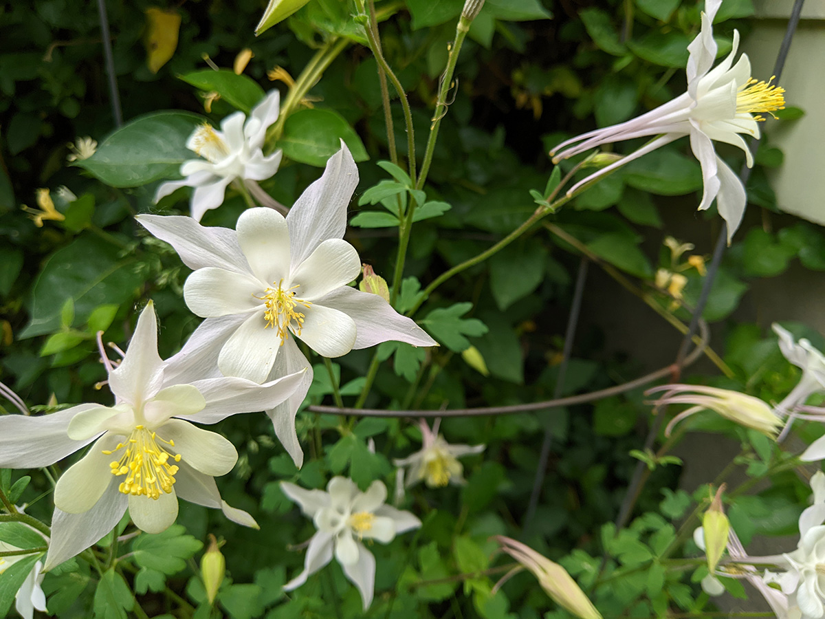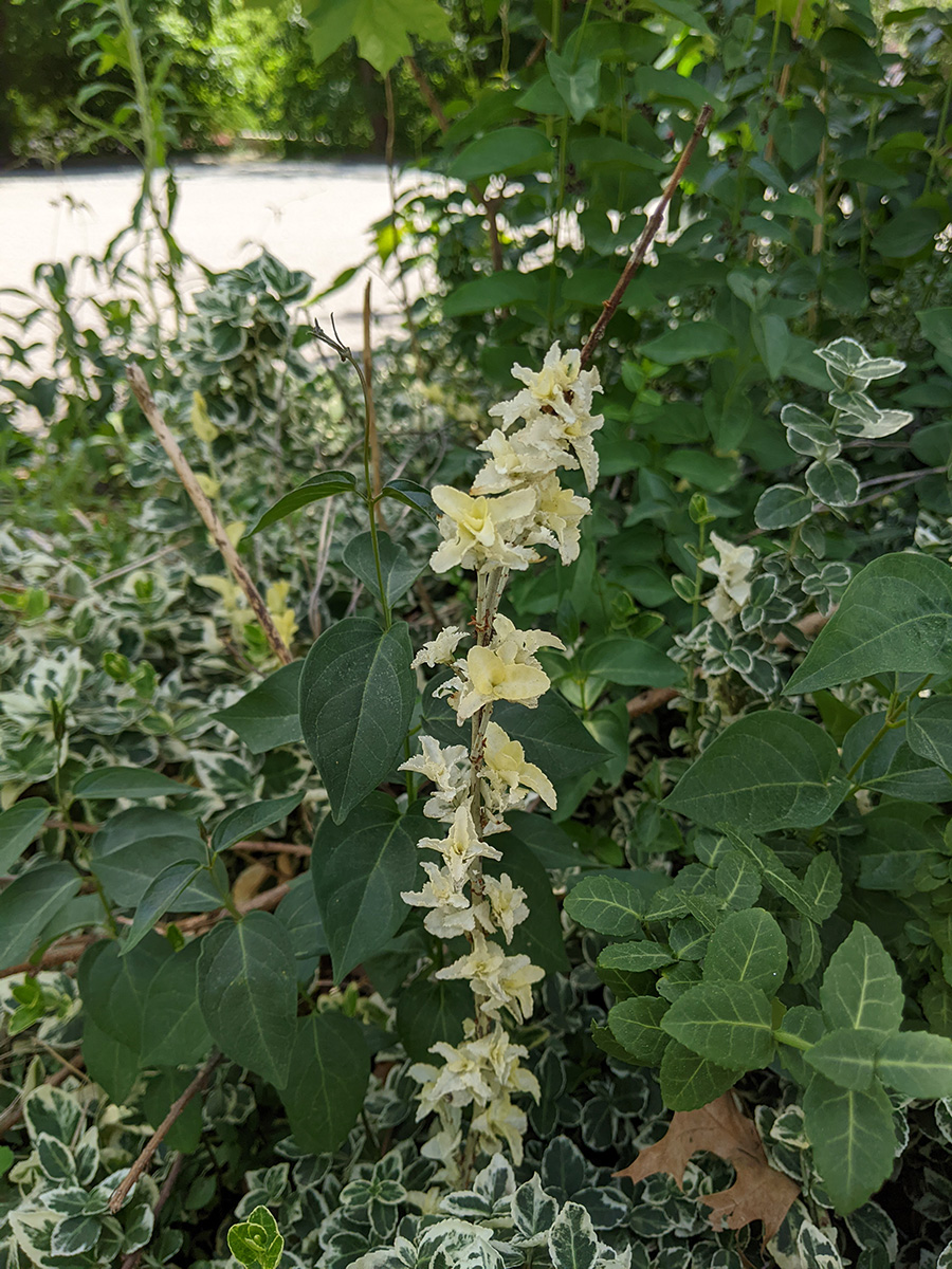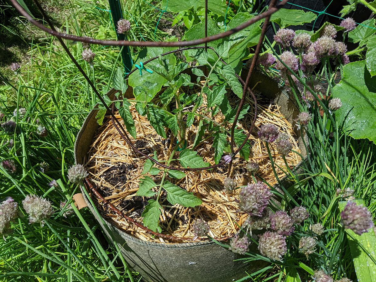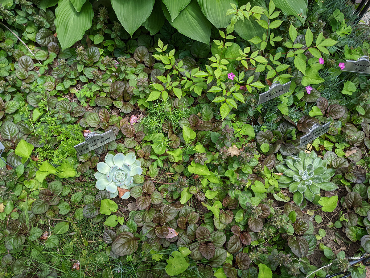we now have two different types of scallions growing in the backyard: the one that forms a ball of tiny flowers, and the one that forms wandering scallion bulbets. i also noticed that the only surving verbascum plant i grew from seed last year and transplanted into the western perennial bed has managed to stay alive. it looks remarkably like foxgloves, so maybe that's why i missed it, but the emerging flowers look like a tiny green ear of corn, instead of the taller flower stalks of foxgloves.