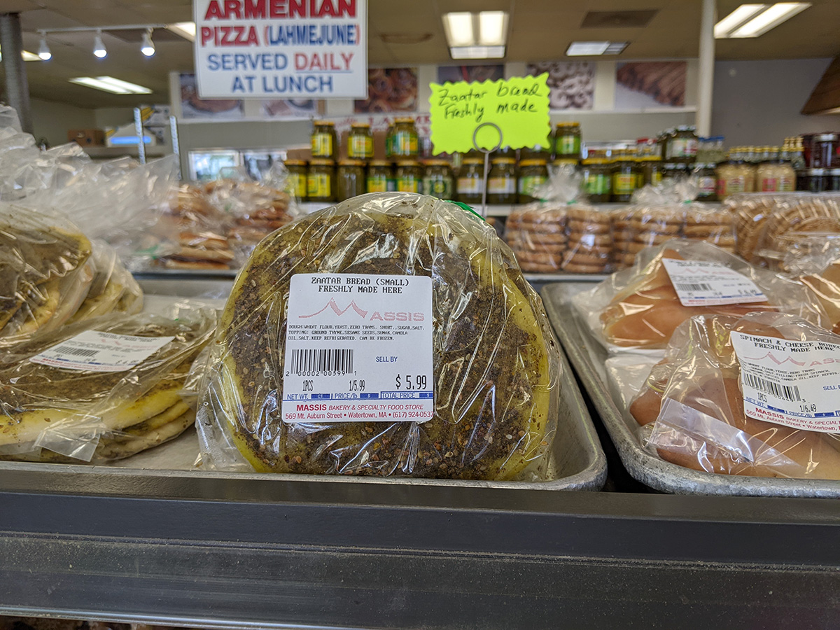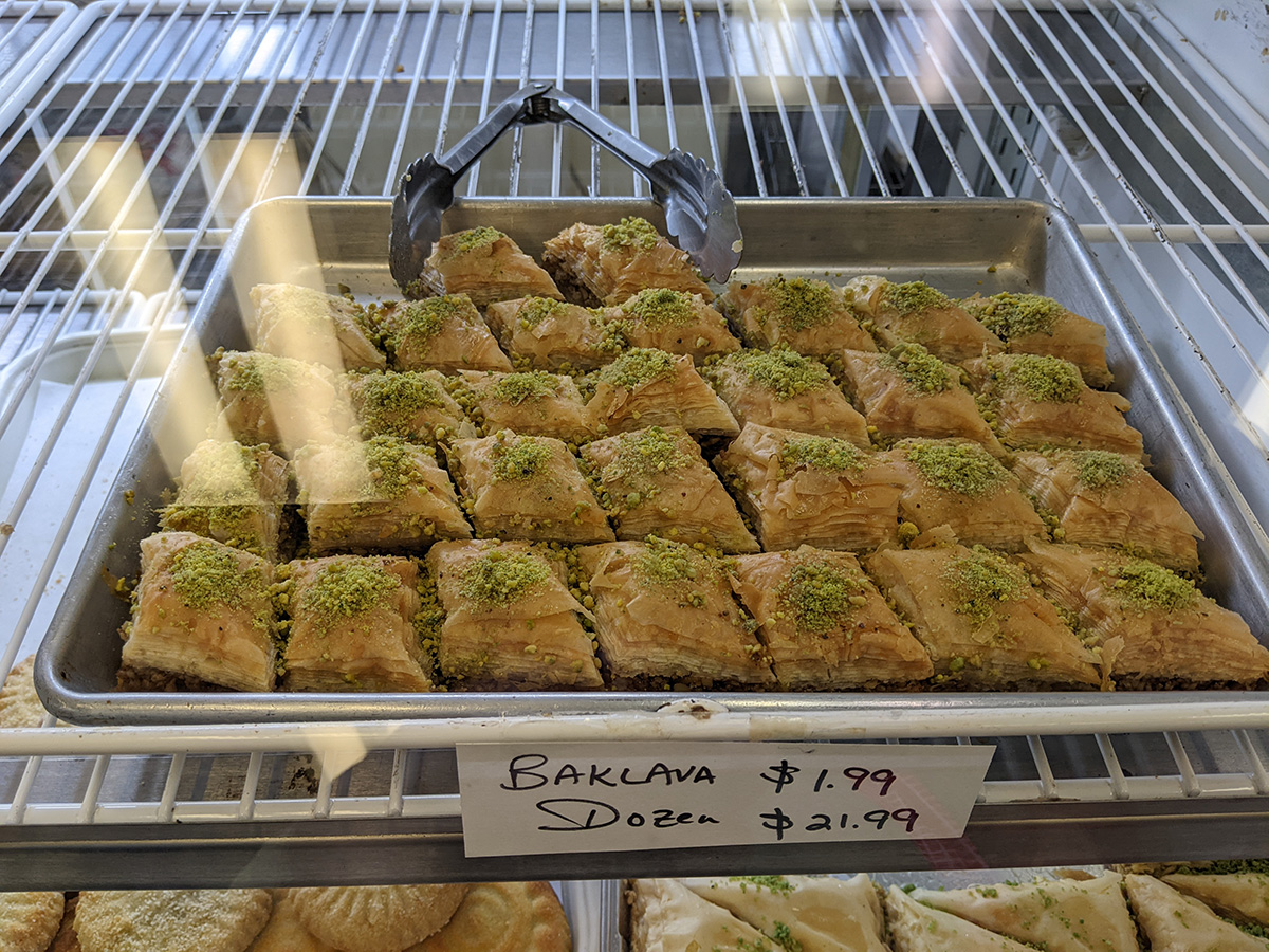 next we visited arax market, one of the original middle eastern grocery stores in the area, with an awning sign that said established in 1974. we've been here before, there were a lot of interesting things, but we only left with some pita bread ($2). they did have double roasted chick peas at a cheaper price.
