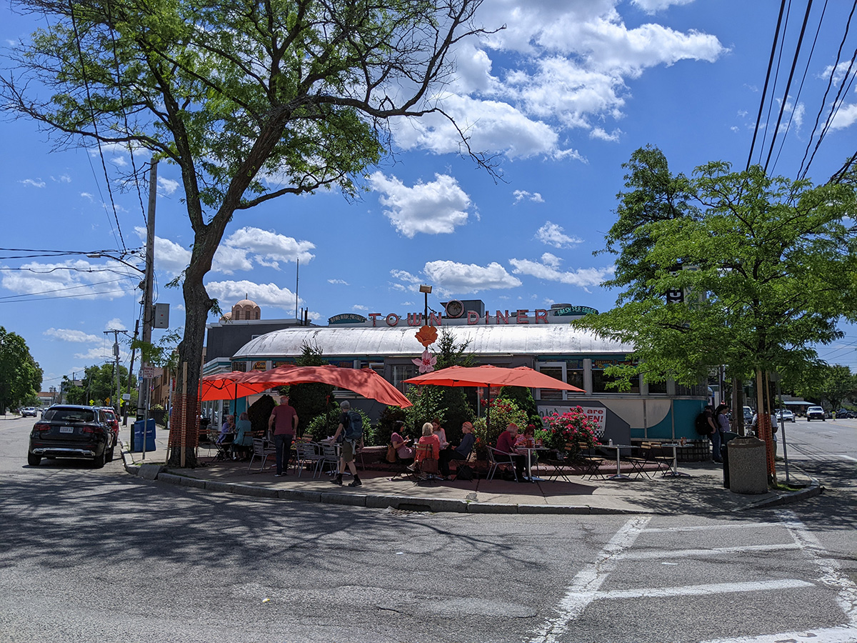 there was a customers eating outside the deluxe town diner. when we came last time, the place was empty, or possibly too cold for people to be eating outside. my mother vowed to come back and try the place one of these days, especially after seeing the large portions the patrons (many whom were senior citizens) were having.