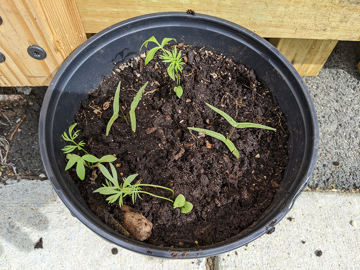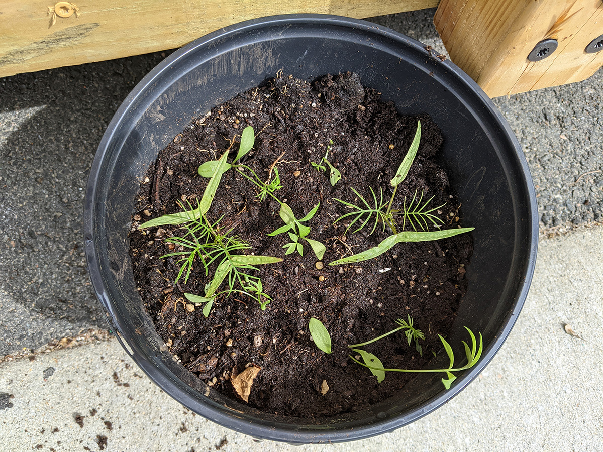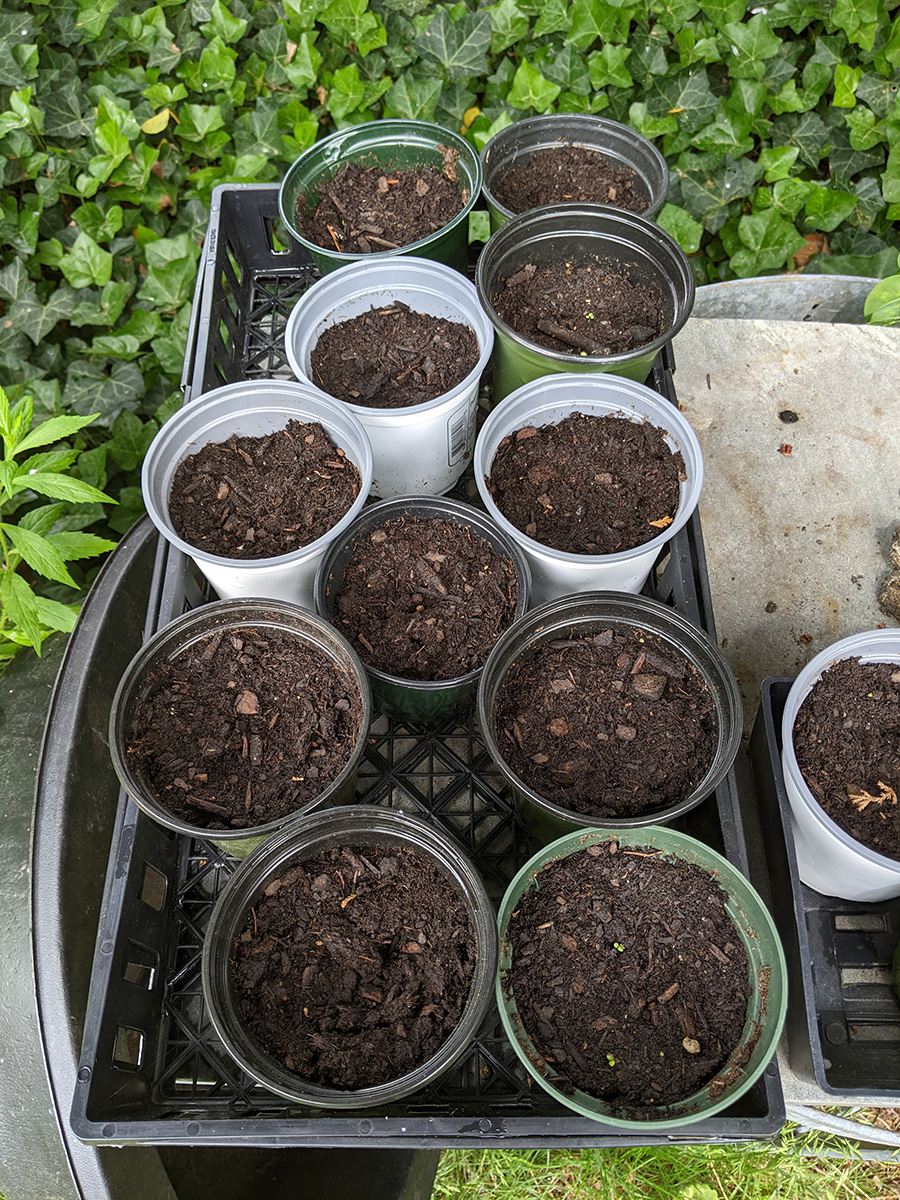 i went to home depot to get some smaller size screws and nuts for the battery project. i measured the ones my father got - 1/4" diameter - and got one size smaller, size 12. i then rode to the cafe, getting there by 3:30pm. i gave the screws and nuts to my father, and planted the nigella seedlings in the 3 cypress vine pots we'd prepared over the weekend. my mother packed me some dinner and i got back to my house by 4pm.