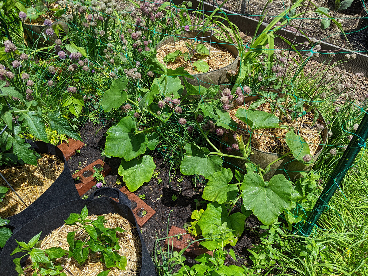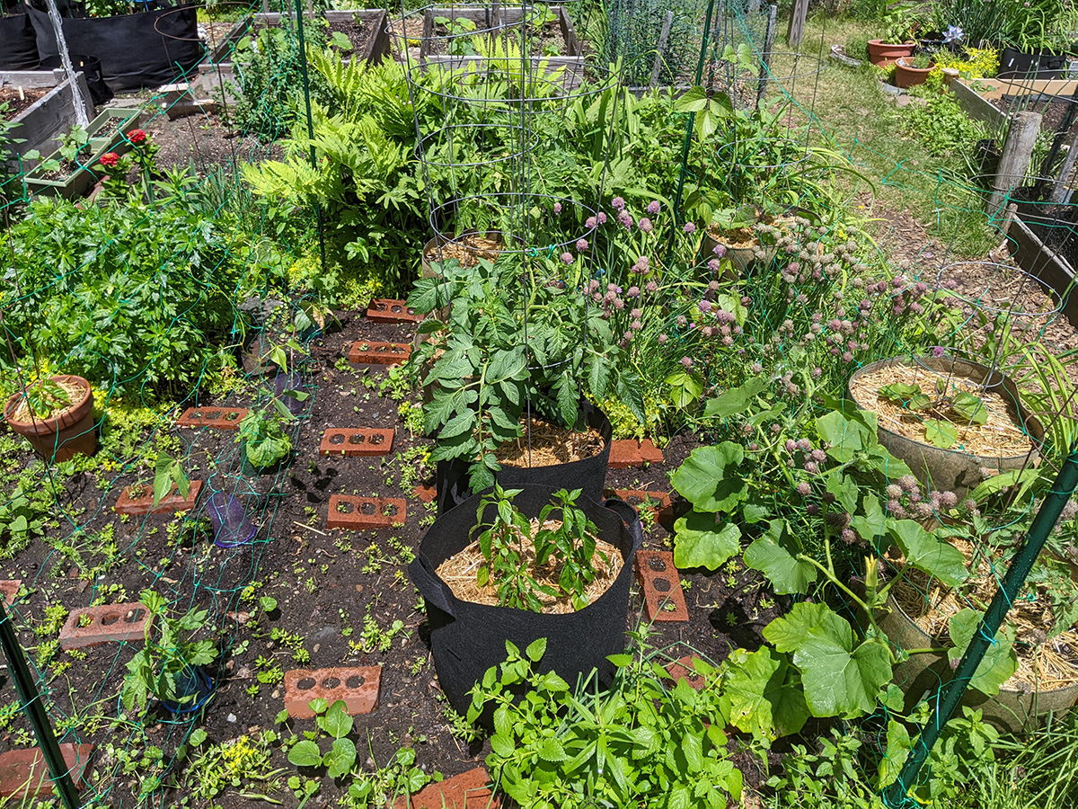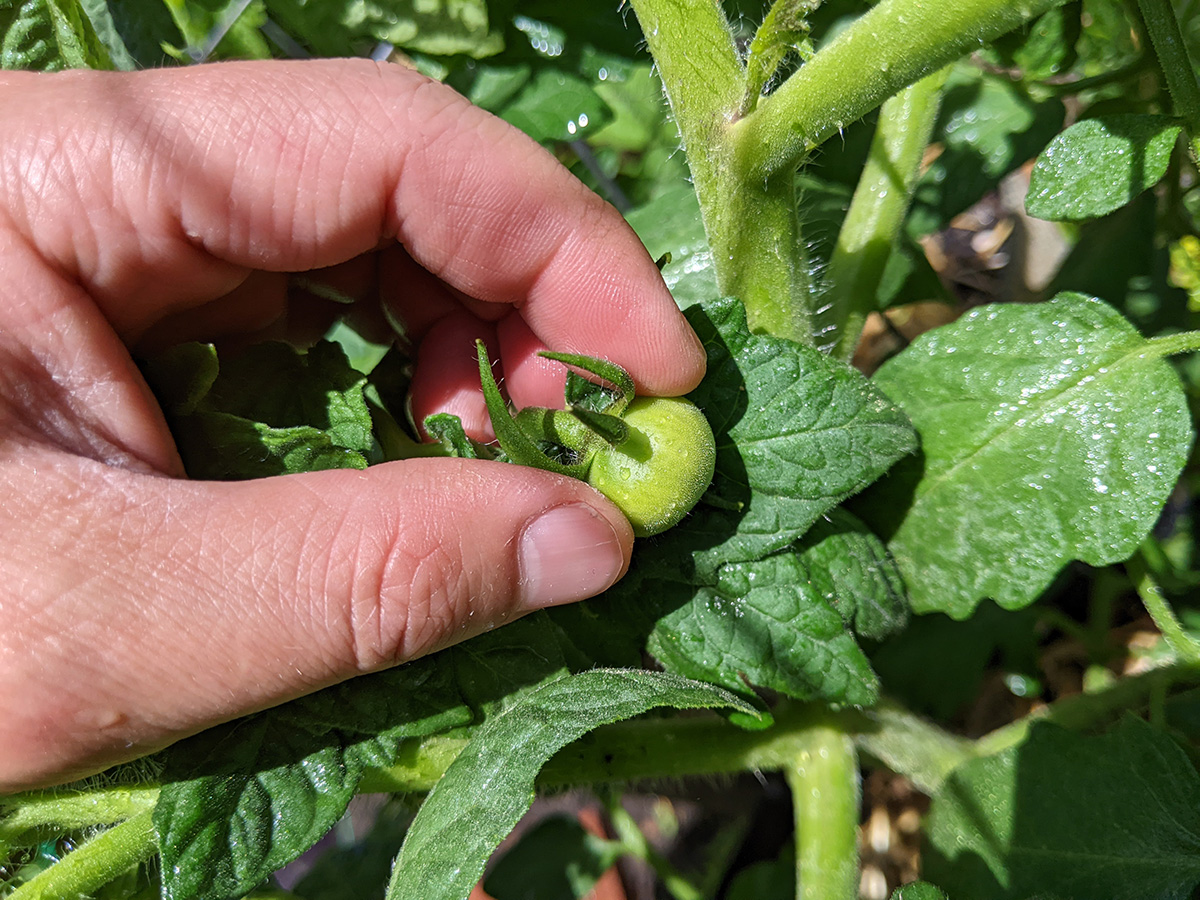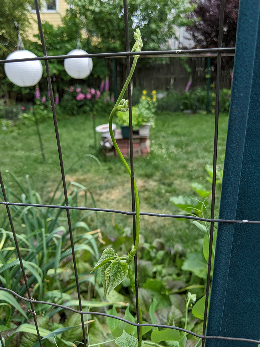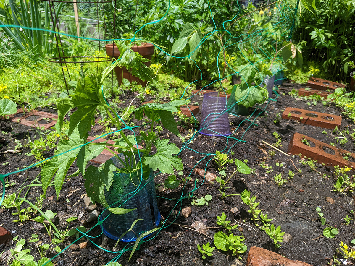 the entire run took about an hour (in a perfect world, if i could achieve a 7-minute-mile, i'd be back home in just under 30 minutes). instead of going home, i detoured to the community garden (12:20pm) so i could water my plants. gretchen was there, planting some tomatoes and peppers.