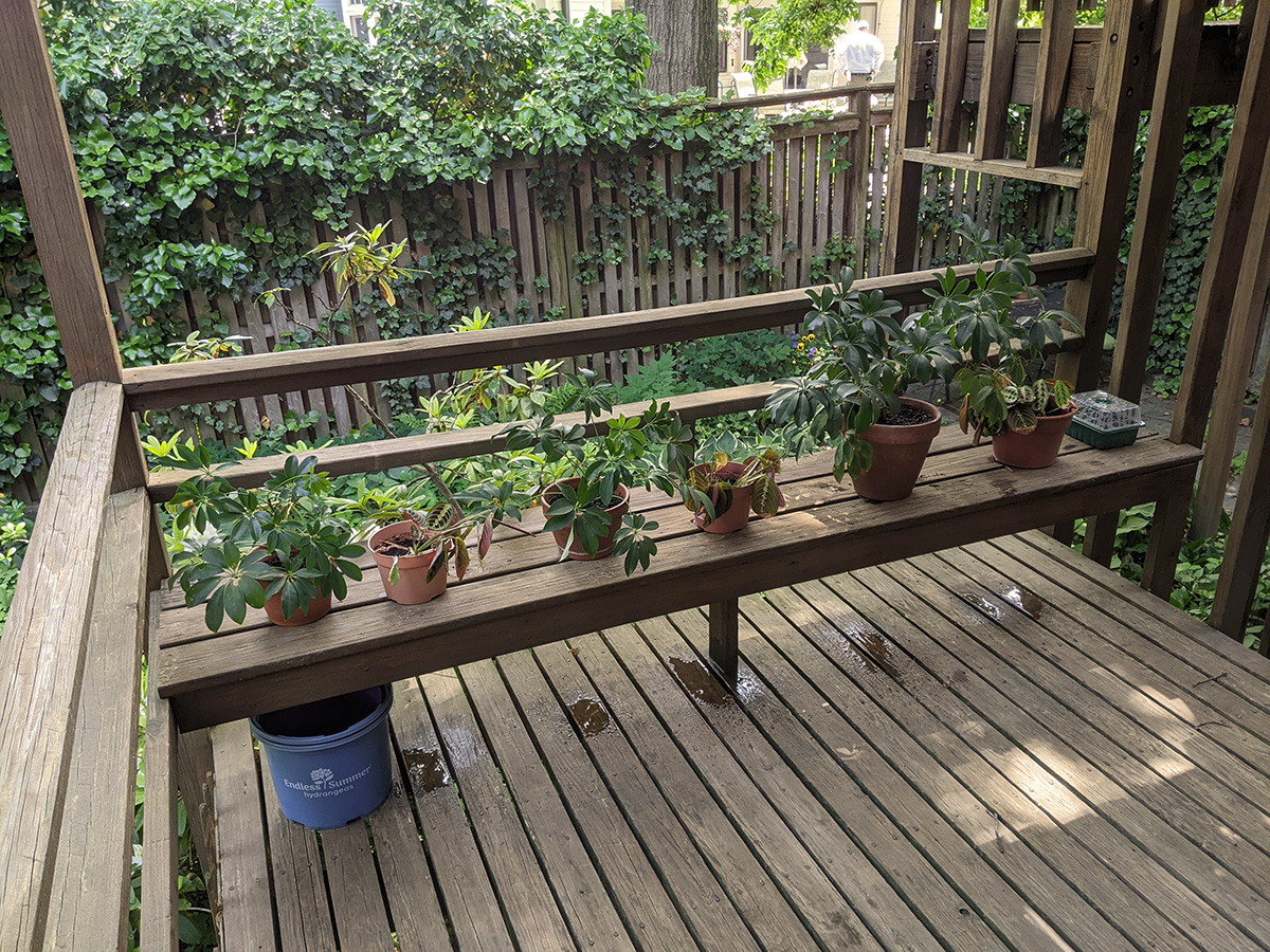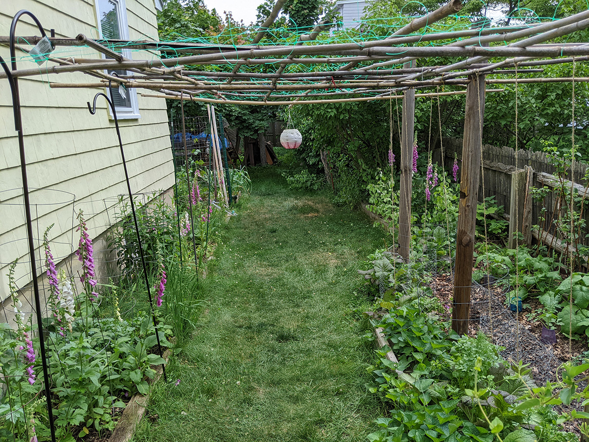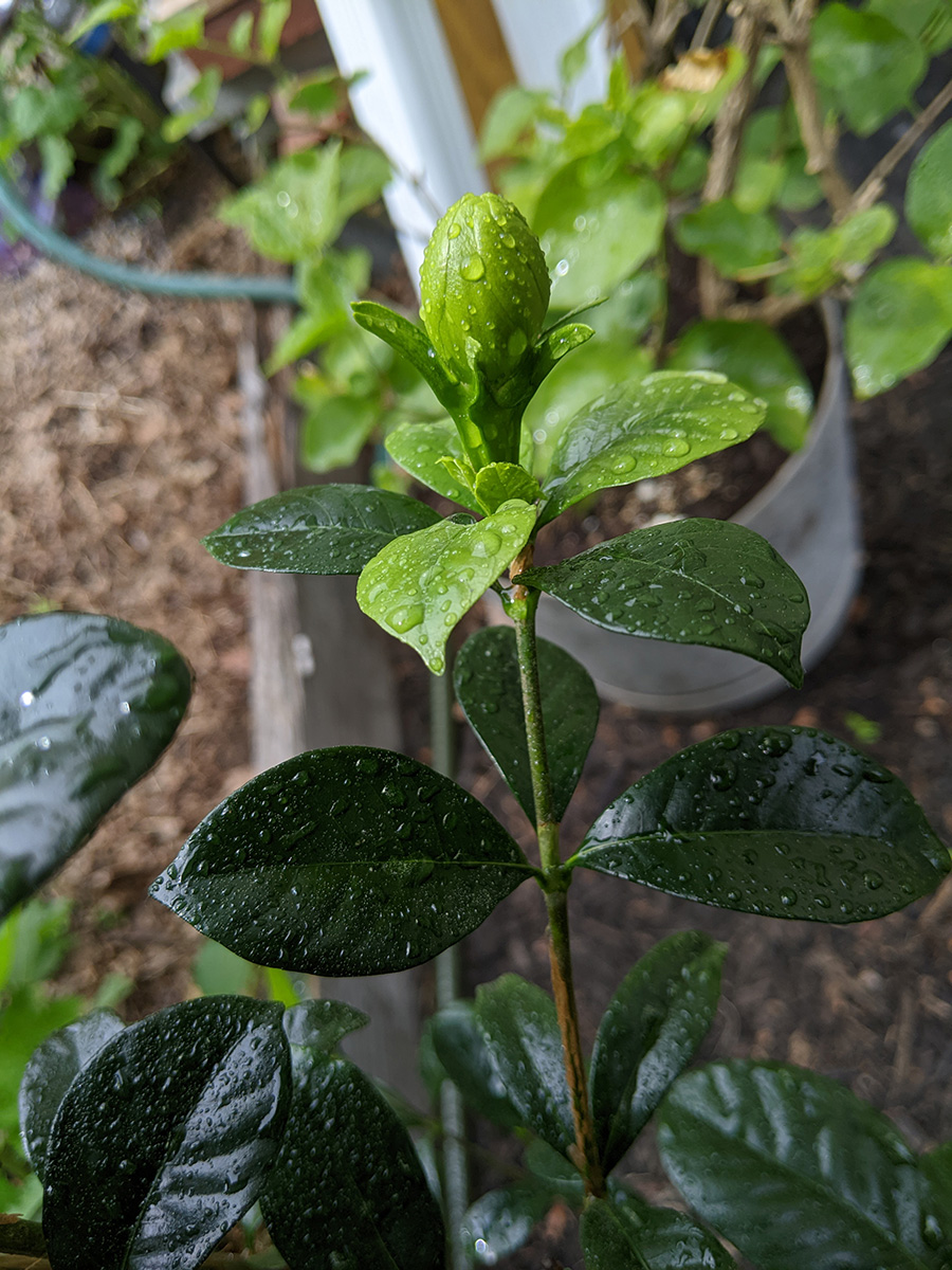 i got dressed and rode the motorcycle to my parents' place, where i dropped off the thai basil and did some backyard watering. i managed to empty the rain barrels (which was already pretty empty from the weekend of heavy watering), which is a good thing, because it's going to rain wednesday and thursday, which will quickly refill the barrels. i was in belmont for about an hour, finally leaving by 3pm.