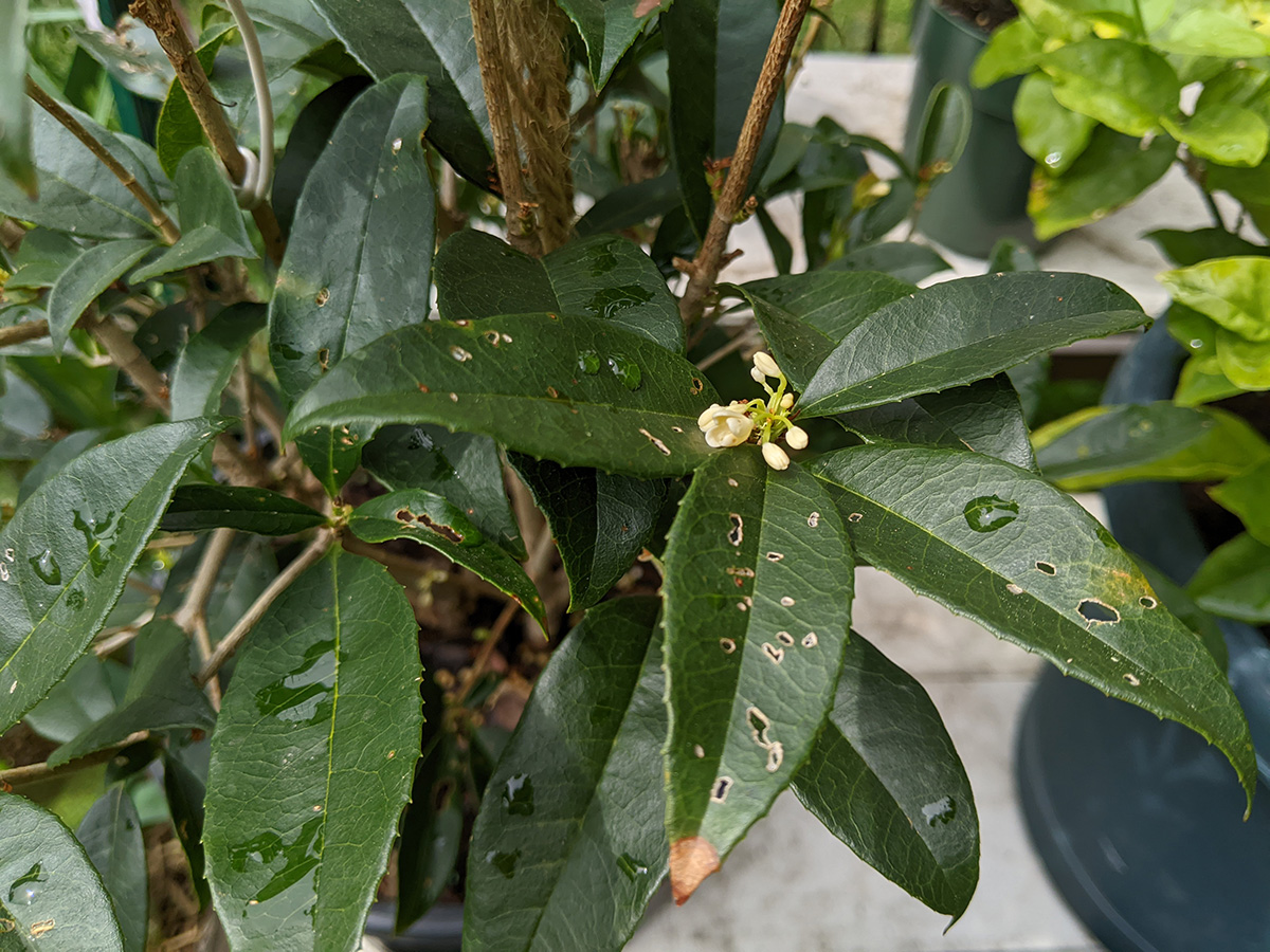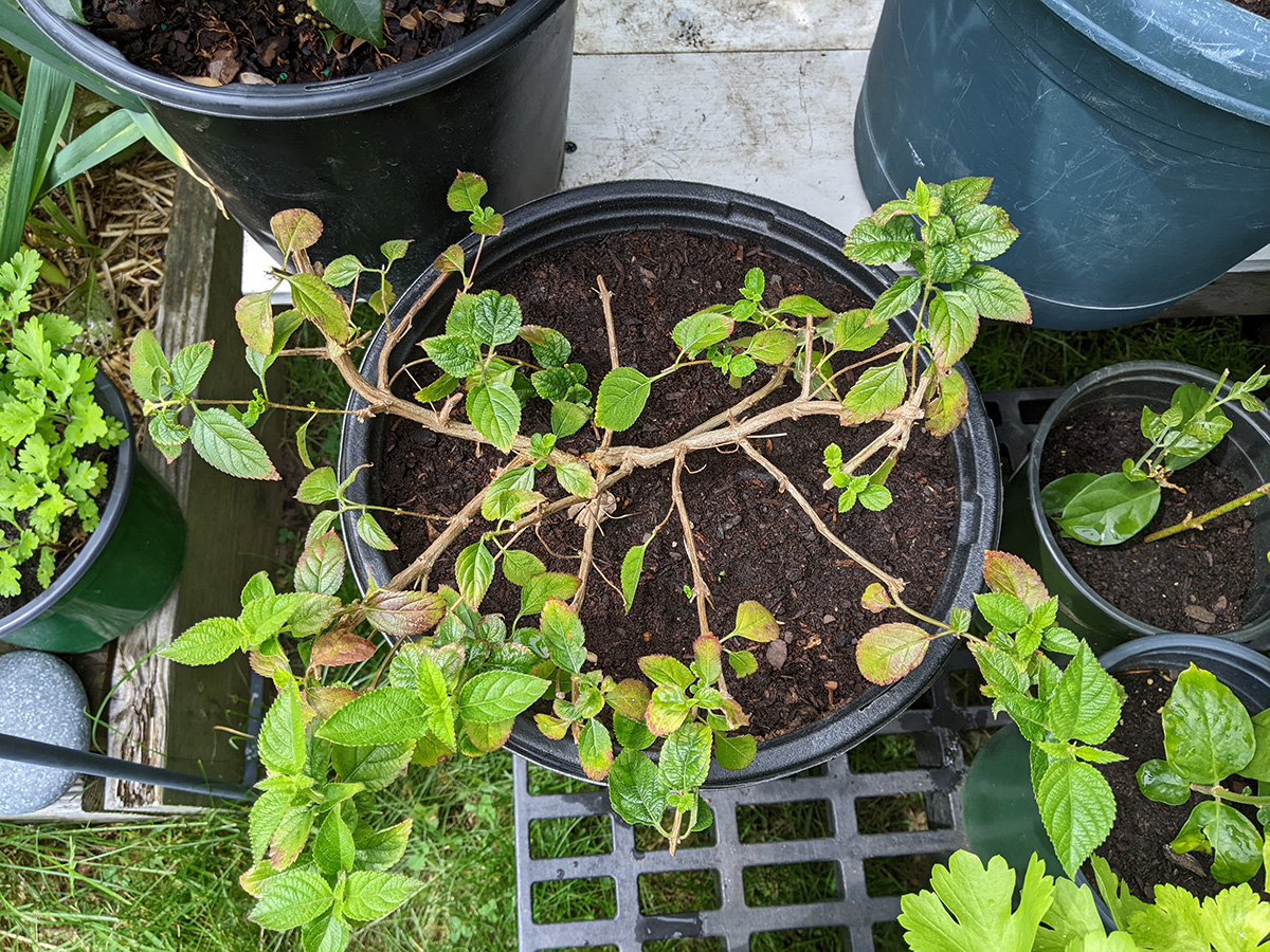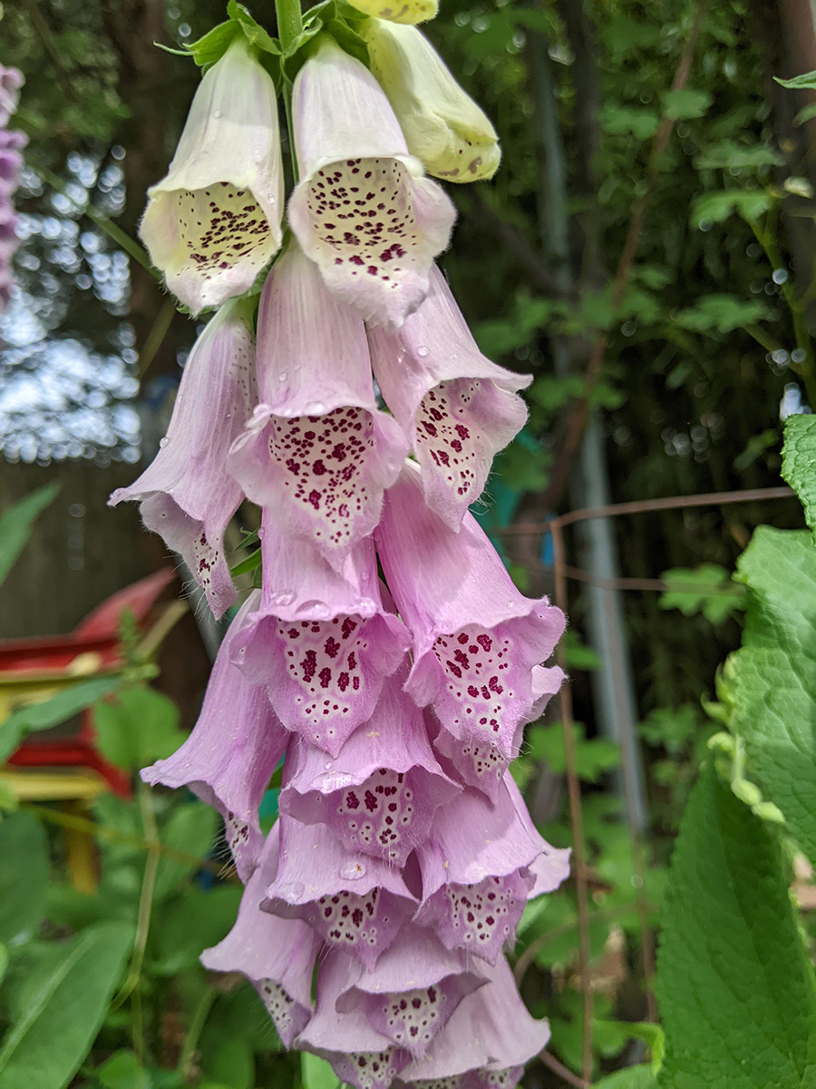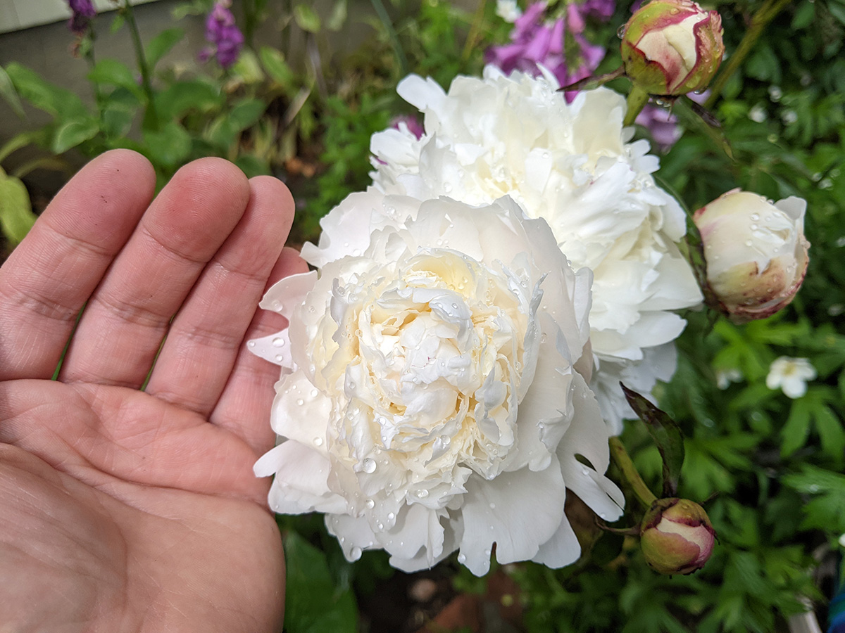 i got dressed and rode the motorcycle to my parents' place, where i dropped off the thai basil and did some backyard watering. i managed to empty the rain barrels (which was already pretty empty from the weekend of heavy watering), which is a good thing, because it's going to rain wednesday and thursday, which will quickly refill the barrels. i was in belmont for about an hour, finally leaving by 3pm.