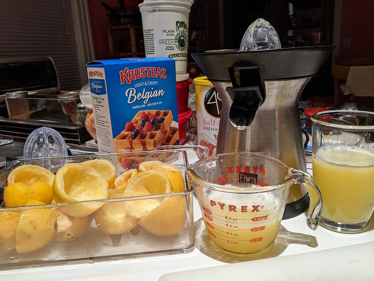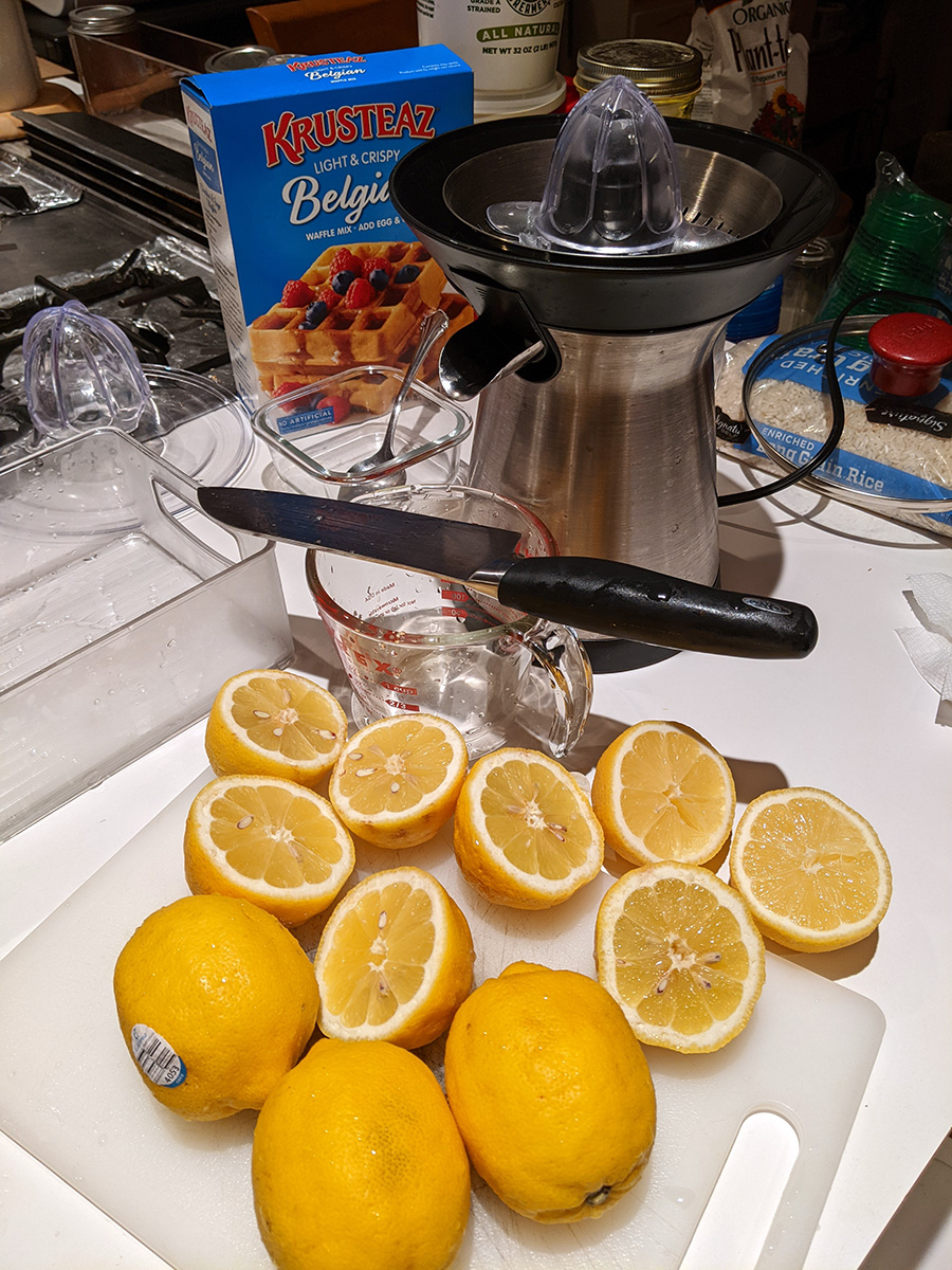 i snacked on some smoke gouda and pepperoni in the early evening. around 8:30pm i cut up the 7 lemons i bought from haymarket 2 weekends ago, in order to make lemonade.