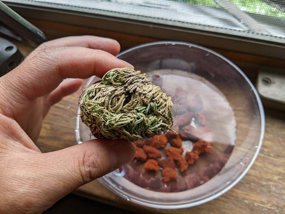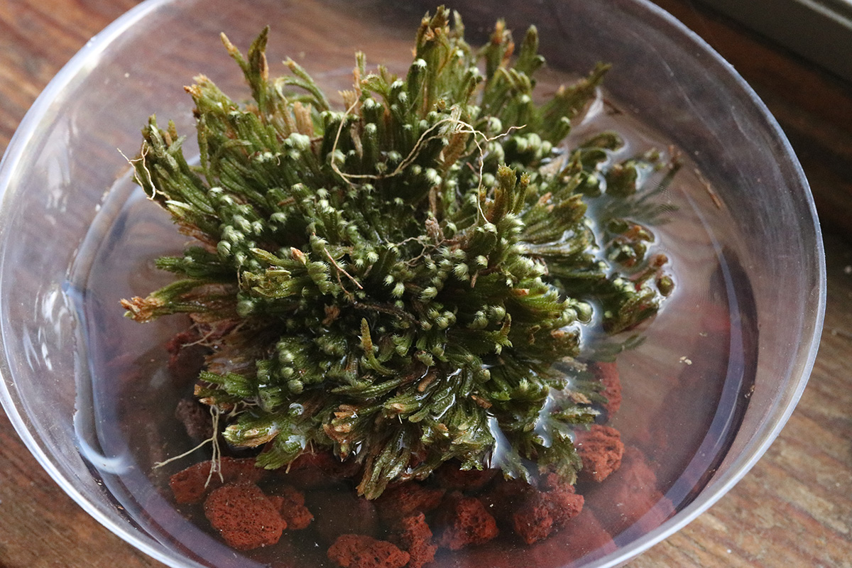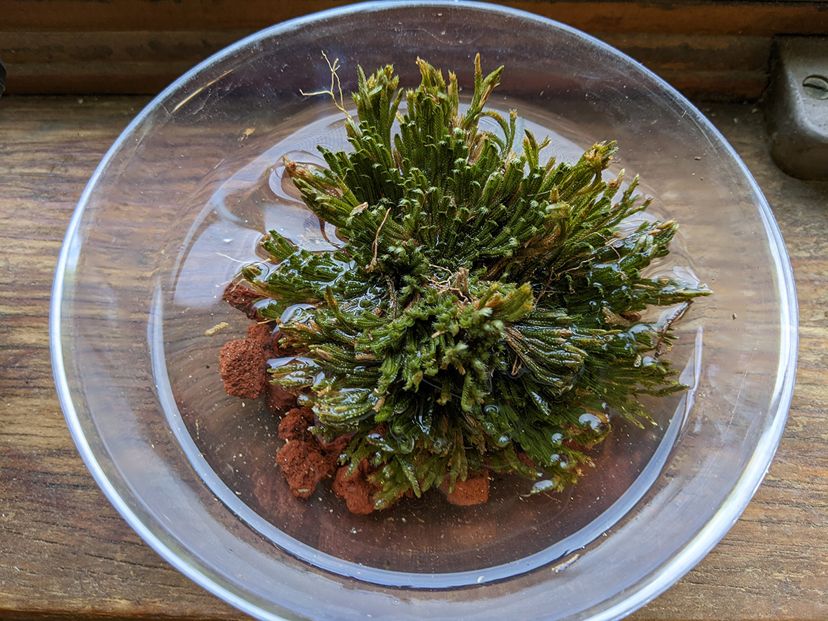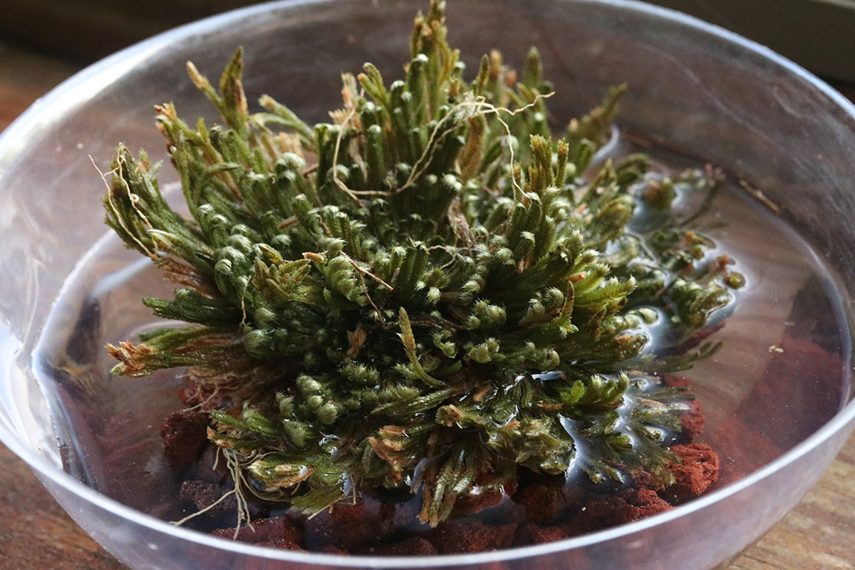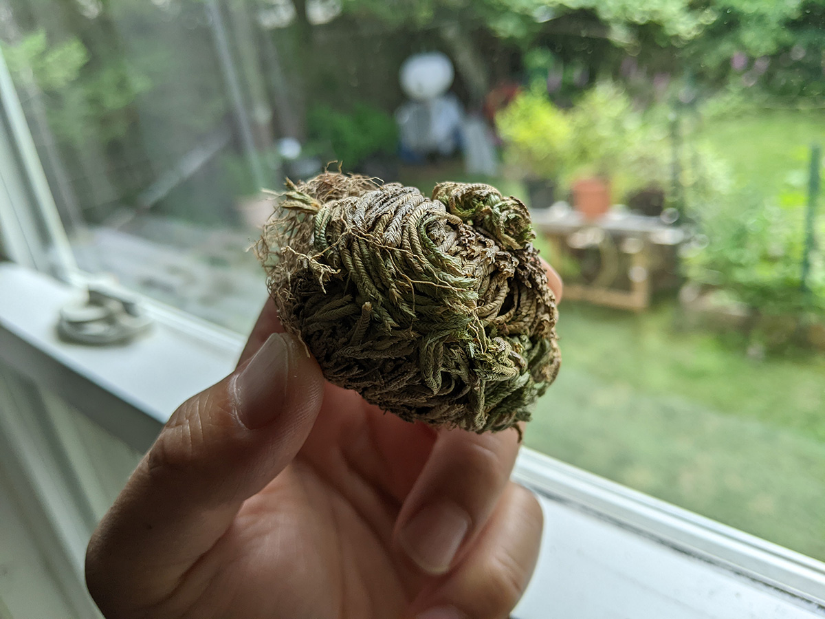 the reason why it took me so long to eat my lunch was because i was busy preparing my resurrection plant (Selaginella lepidophylla) for blooming. i got this package of resurrection plant - marketed as a dinosaur plant - from my neighbor don 1-2 years ago. it'd been sitting in my house, waiting to be bloomed. of course i set up my gopro so i could get a time lapse video of the resurrection plant in action. not only did it come with one dried plant, but also a plastic dish and some red lava rocks from new mexico. i put it out on the windowsill in the sunroom so it could get some sun as well. as soon as i soaked the plant in some water, it started to unfurl. what was once a dried up ball opened up over the hours to become a green fern.