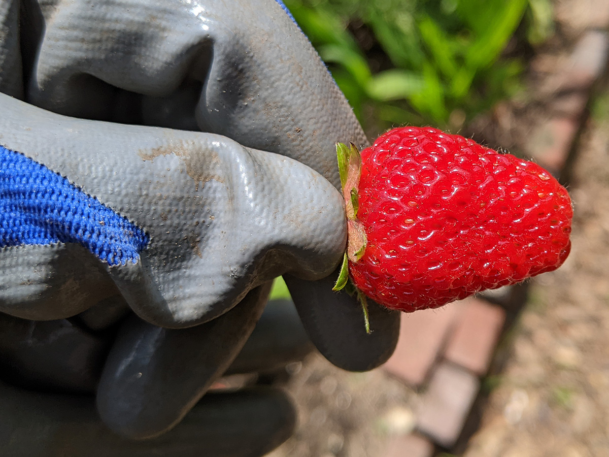 afterwards i went down to the community garden to water my plants. naturally ann was there. for once i'd like to go to the garden where she's not there, but apparently she lives in the garden now. she gave me a prized strawberry - of which there were only a few. i quickly soaked all my plants before leaving.