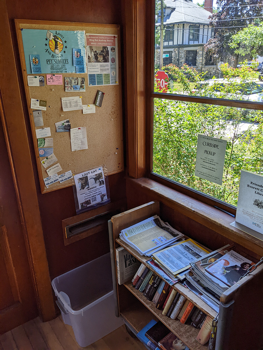 after lunch my mother and i went out for a walk again. she said she wanted to go back to the belmont library branch to get that 500 piece puzzle she saw yesterday. we tried a new route, and saw many vegetable gardens - all enclosed by chicken wires, which seems to be the only way to keep rabbits from eating everything. we even saw a house that had half a dozen rain barrels (don't know if they use an on-demand pump). we didn't make it to cushing square, but instead took a detour and went by the chenery middle school. i haven't been down that area in a while, had some nostalgic flashbacks. coming back, we spotted a chipping sparrow, which its distinctive reddish brown cap and black eyeline. it was drinking from a leftover water puddle. it looked small enough that i thought it might be a warbler at first before i got back to the house and consulted the field guide.